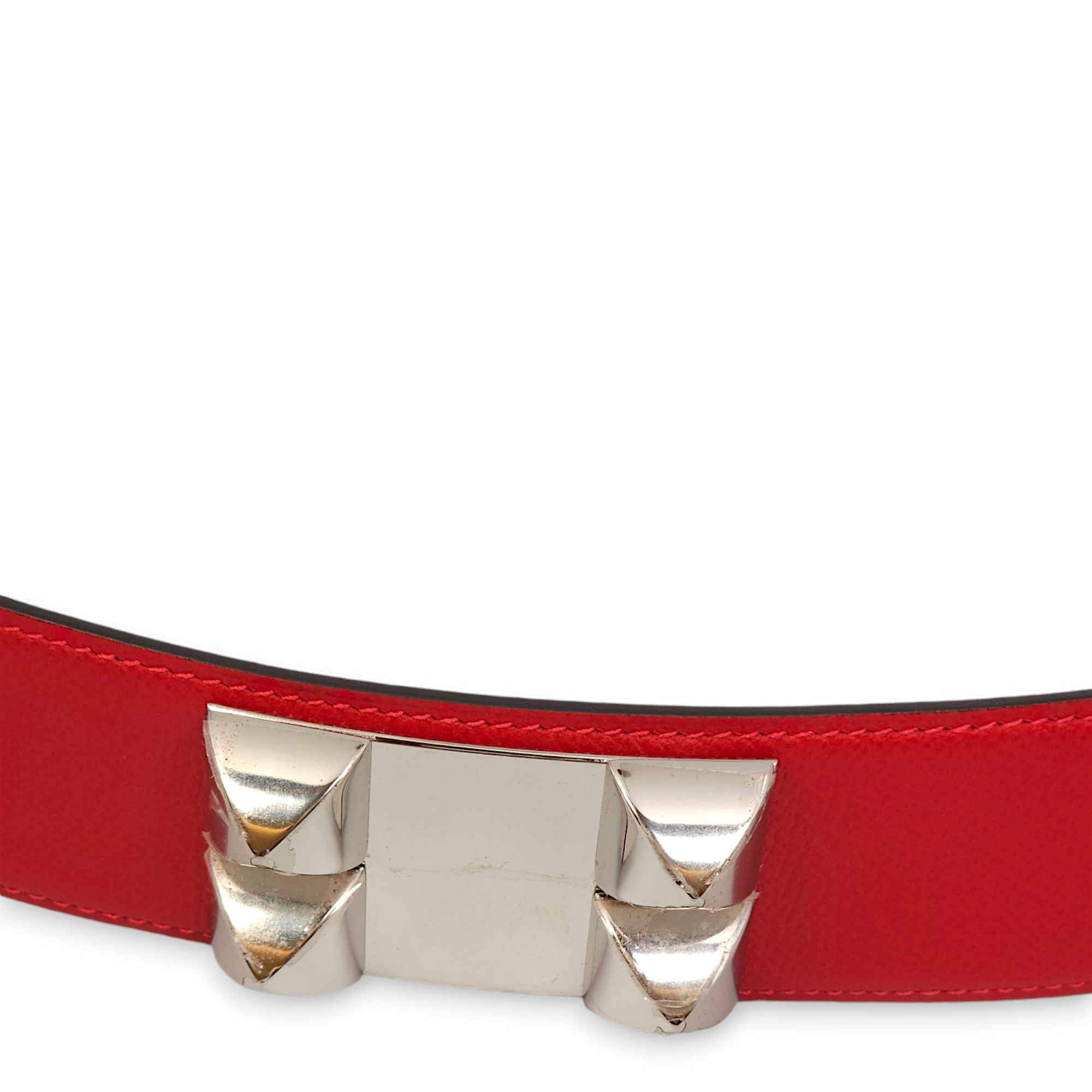 Herm�s CDC 75cm Rouge Casaque Belt in Epsom, Palladium hardware Accessories Belt Red Very Good Condition MEN UNISEX