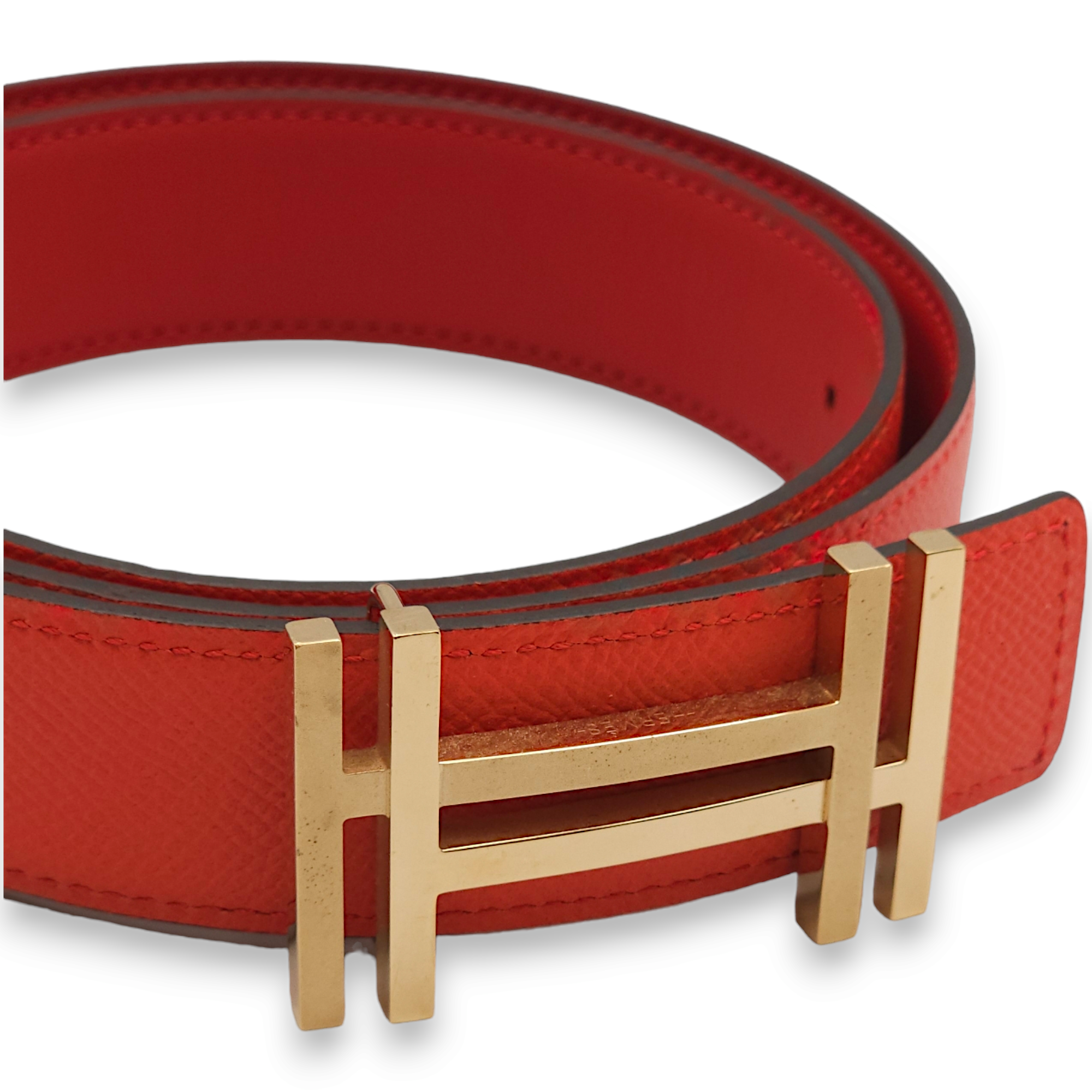 Herm�s H Au Carre 32mm by 80cm Rouge Casaque/Rose Jaipur Belt in Epsom, Gold hardware Accessories Belt Multi-colour Very Good Condition MEN UNISEX