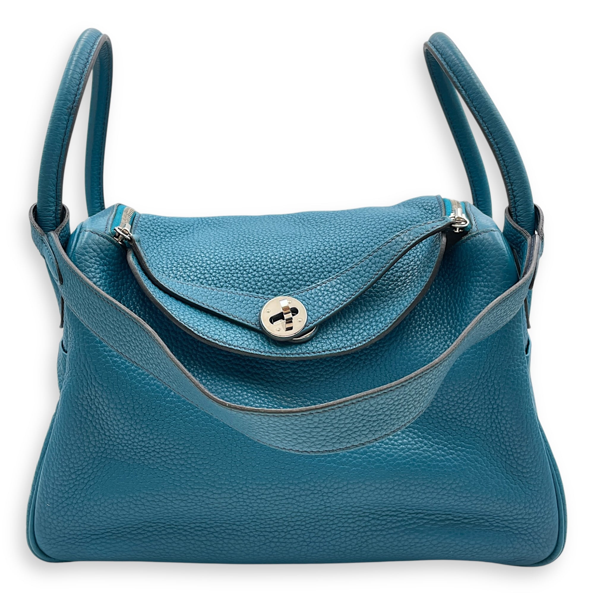 Hermès Lindy 30 Blue Izmir/Blue Sapphire in Clemence, Palladium hardware Bags Shoulder Bag Blue Izmir/Blue Sapphire Blue Fair Condition