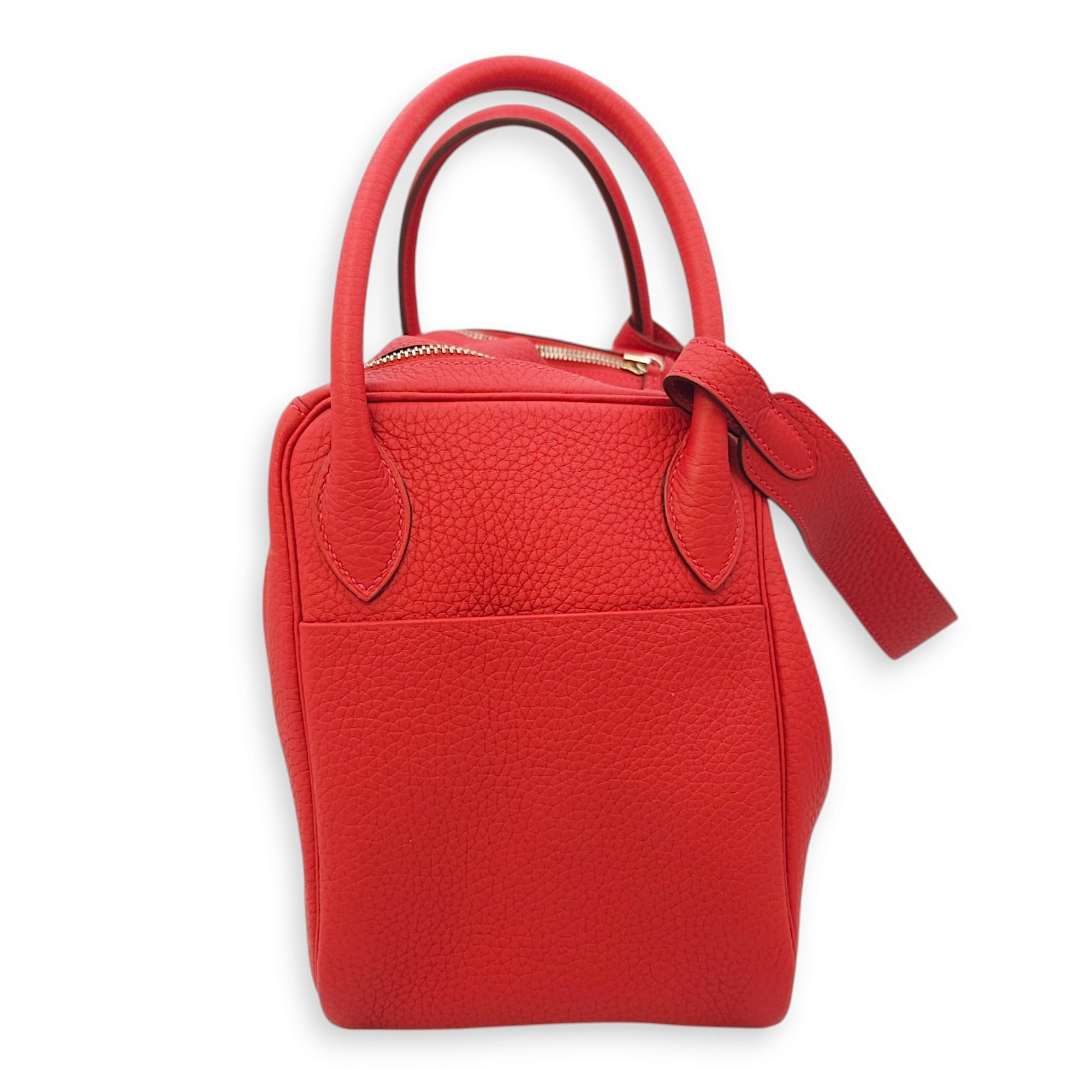 • (Purely handmade customization, 10-15 days construction period) HermèsLindy 30 Rouge Casaque in Clemence, Palladium hardware