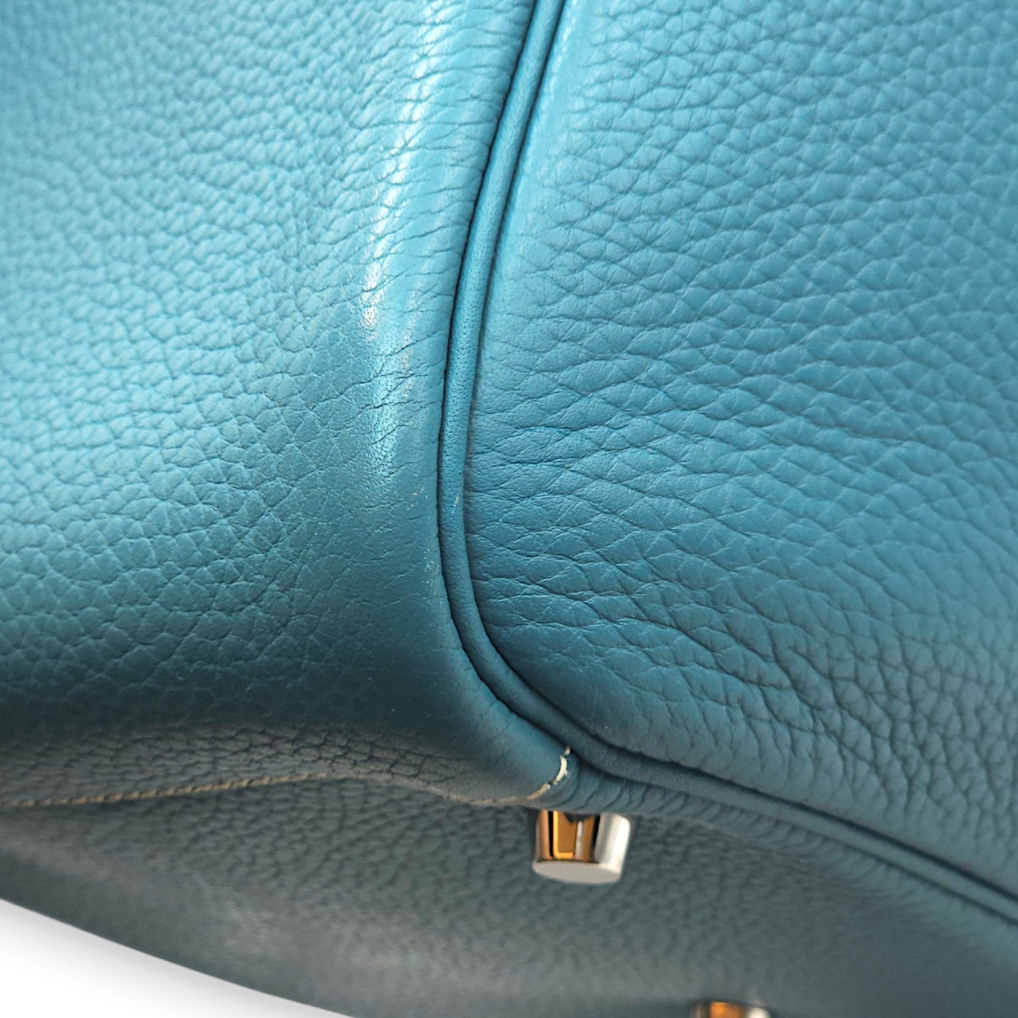 Hermès Lindy Blue Jean in Clemence, Palladium hardware Bags Shoulder Bag Blue Jean Blue Fair Condition