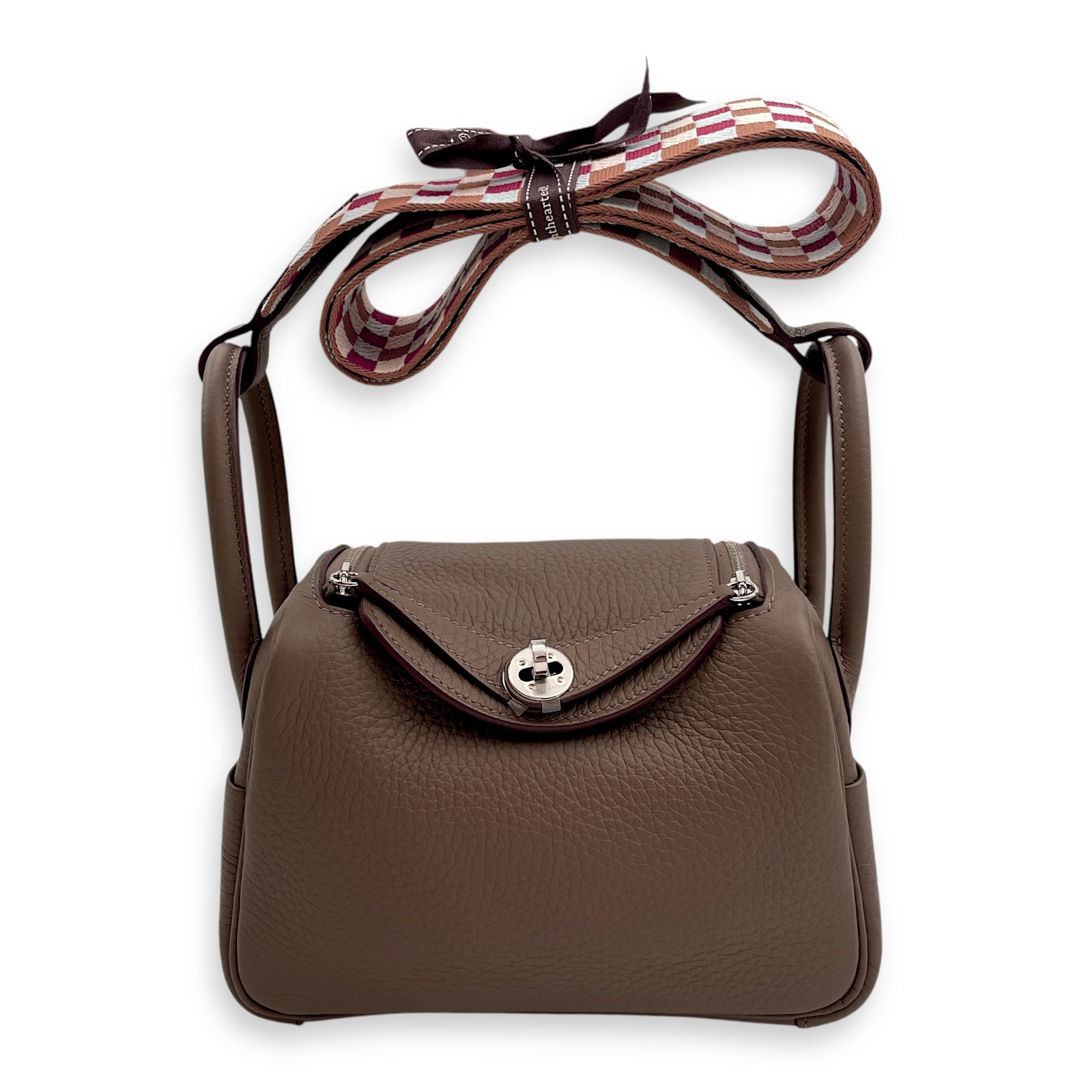 (Purely handmade customization, 10-15 days construction period) HermèsLindy II Mini Etoupe in Clemence, Palladium hardware