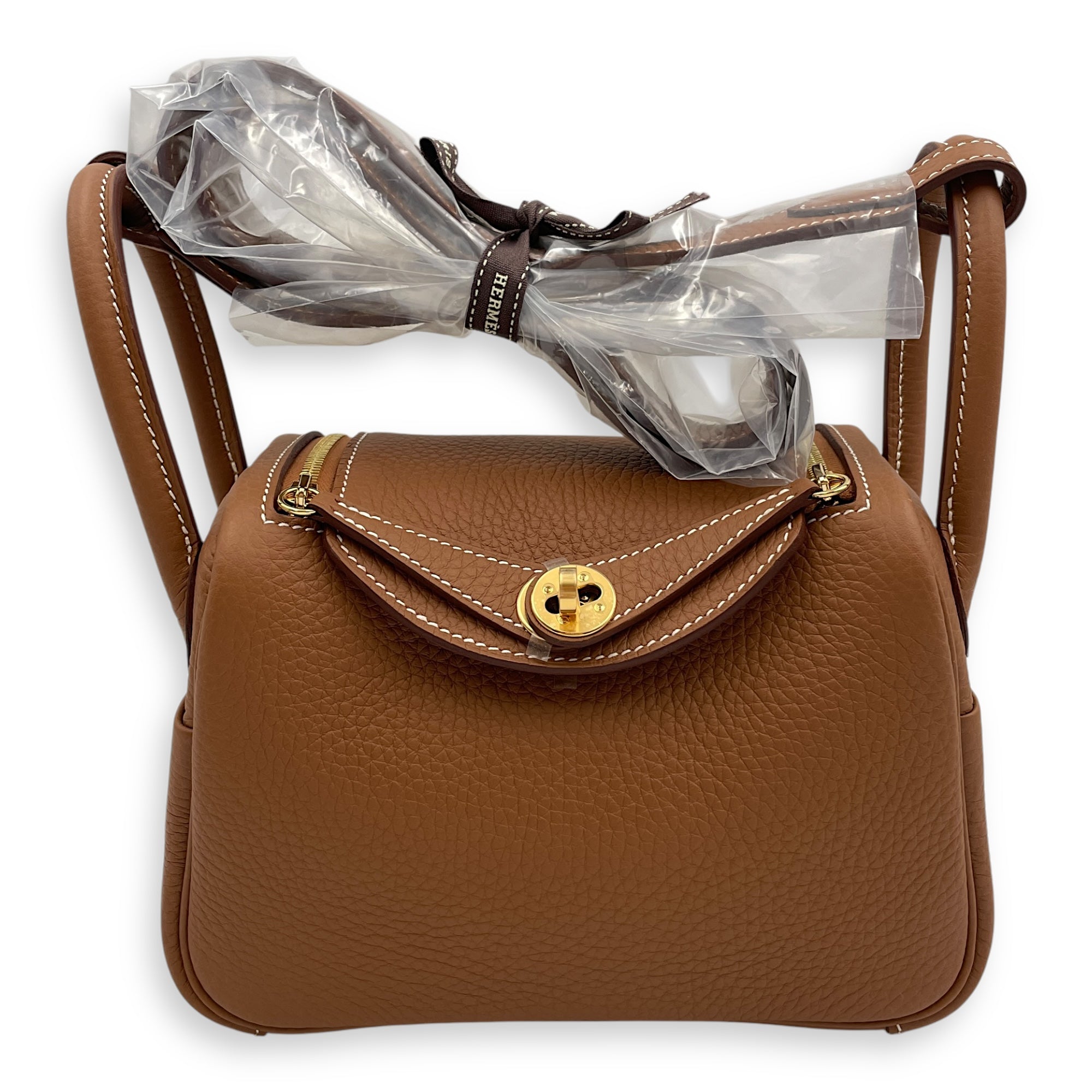 Hermès Lindy II Mini Gold in Clemence, Gold hardware Bags Crossbody Bag Gold Brown Brand New