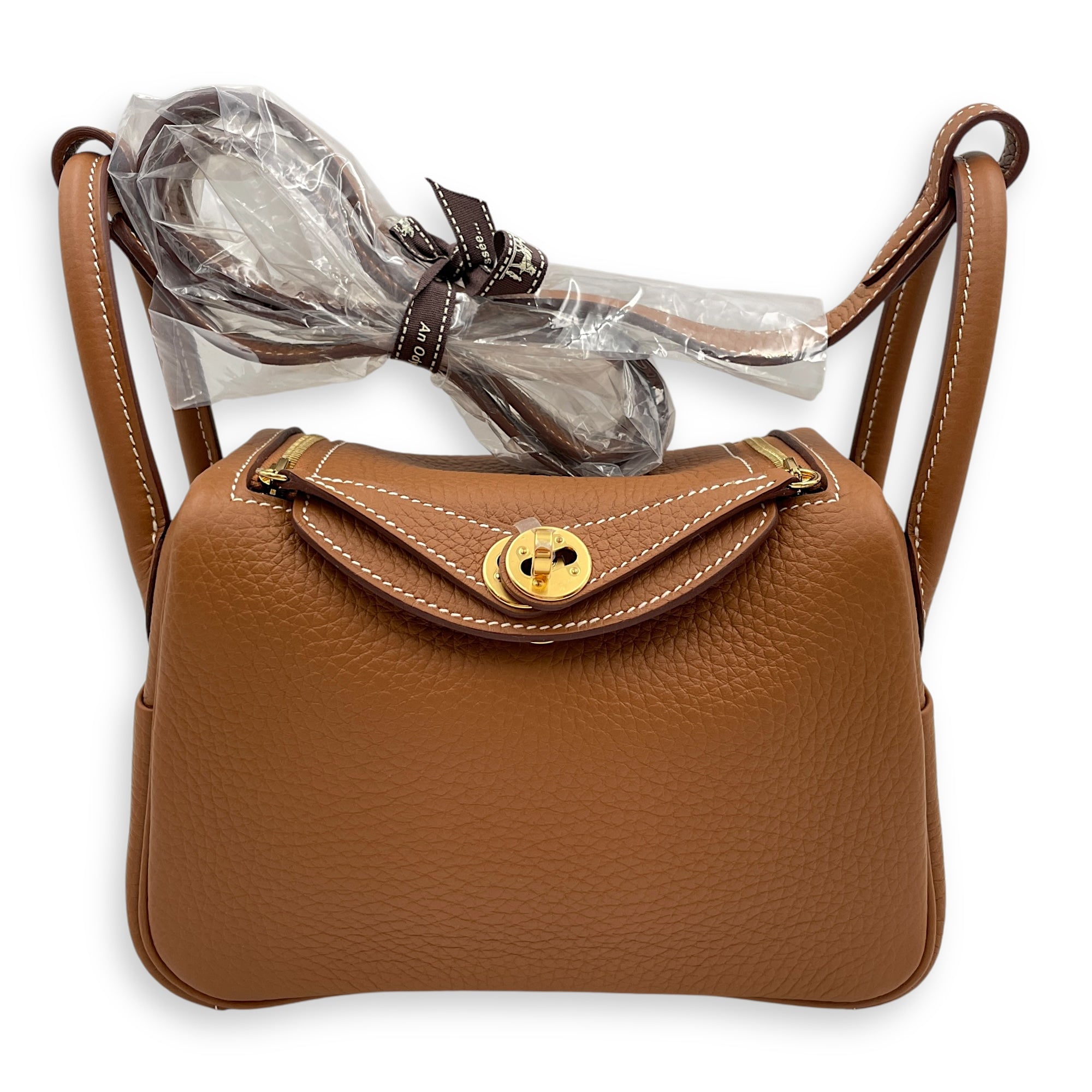Hermès Lindy II Mini Gold in Clemence, Gold hardware Bags Shoulder Bag Gold Brown Brand New