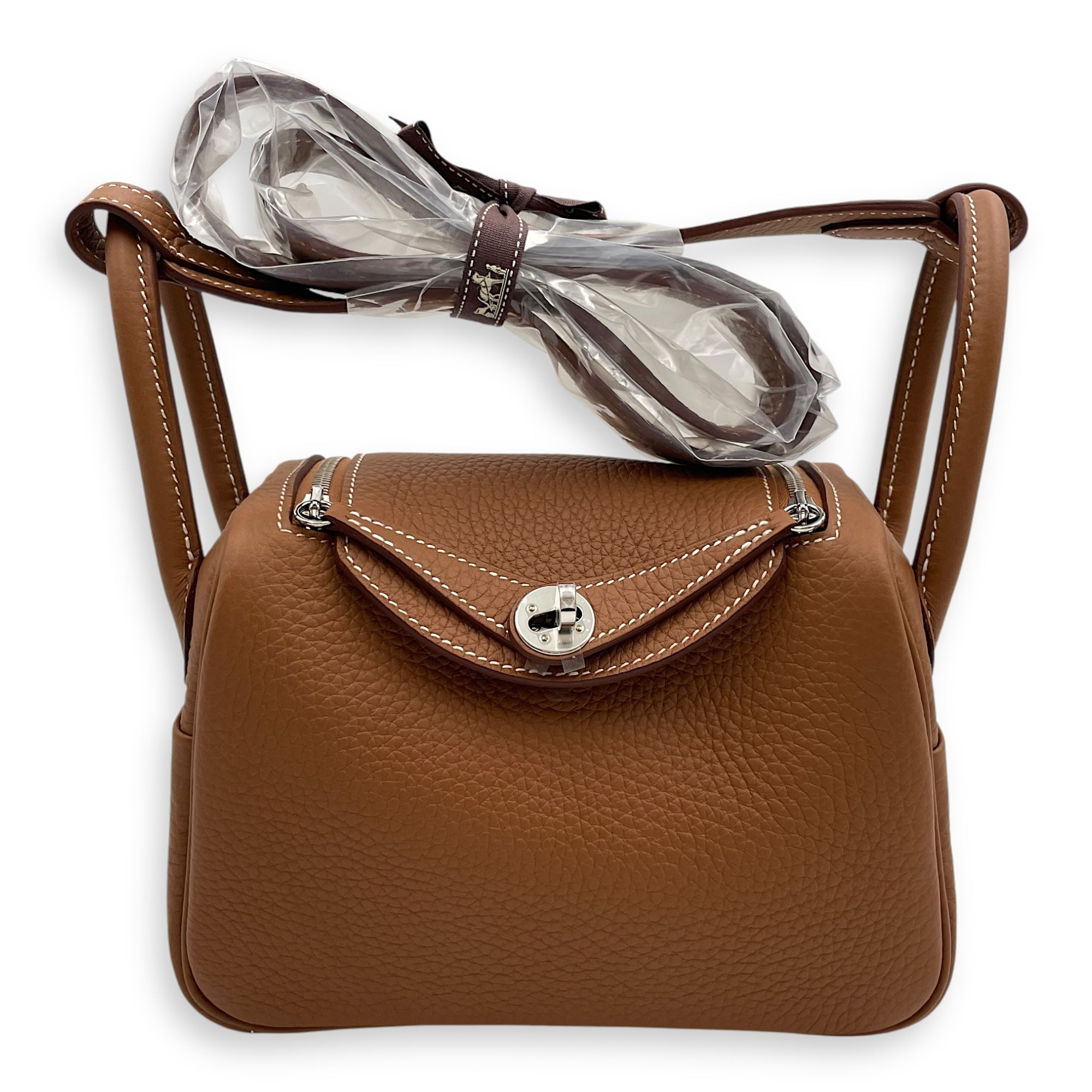 Hermès Lindy II Mini Gold in Clemence, Palladium hardware Bags Shoulder Bag Gold Brown Brand New