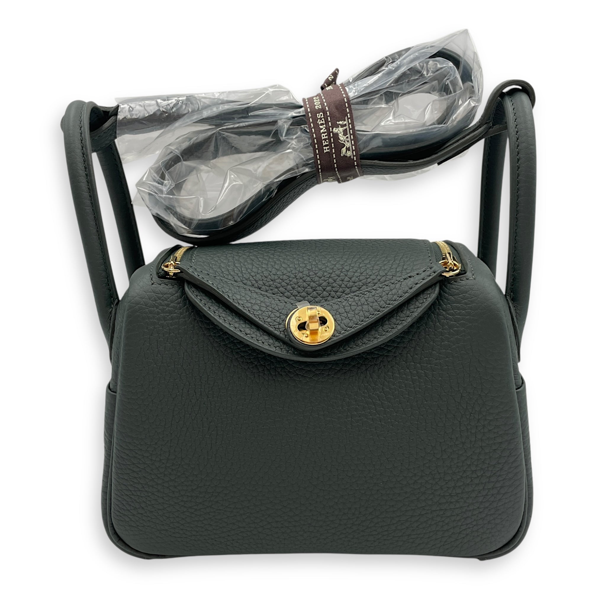 Hermès Lindy II Mini Vert Mangrove in Clemence, Gold hardware Bags Crossbody Bag Vert Mangrove Green Brand New