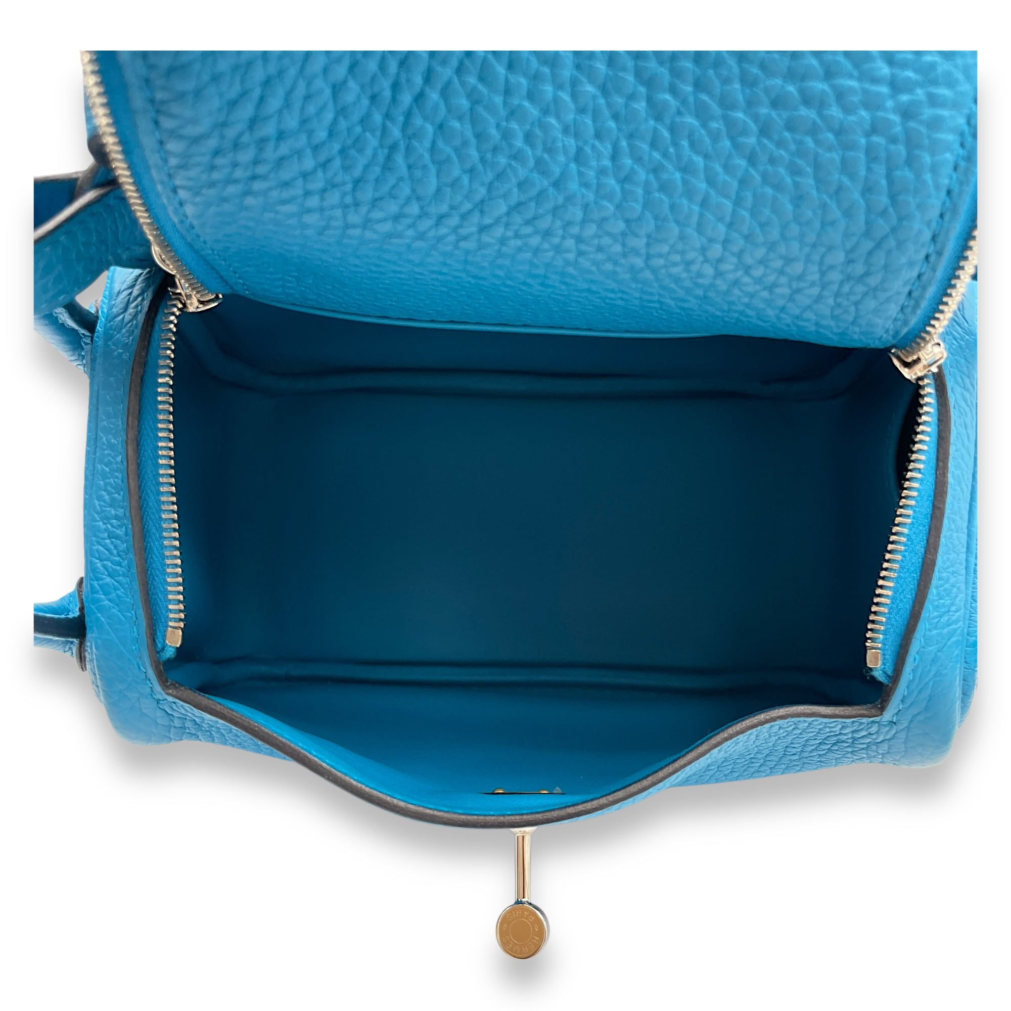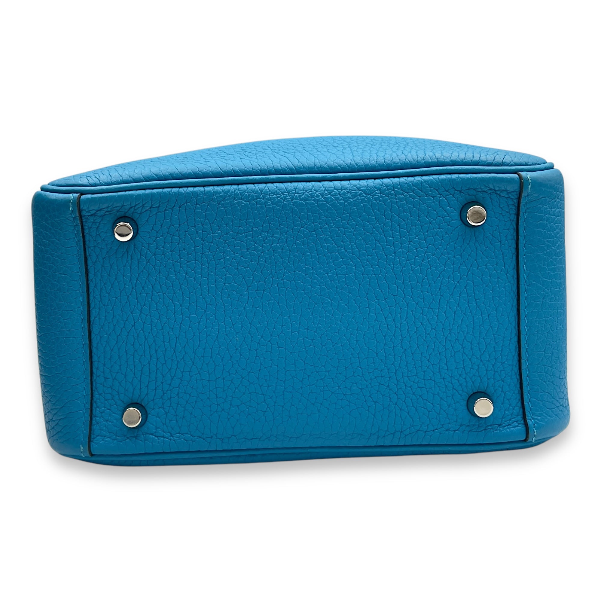 (Purely handmade customization, 10-15 days construction period) HermèsLindy Mini Blue Frida in Clemence, Palladium hardware