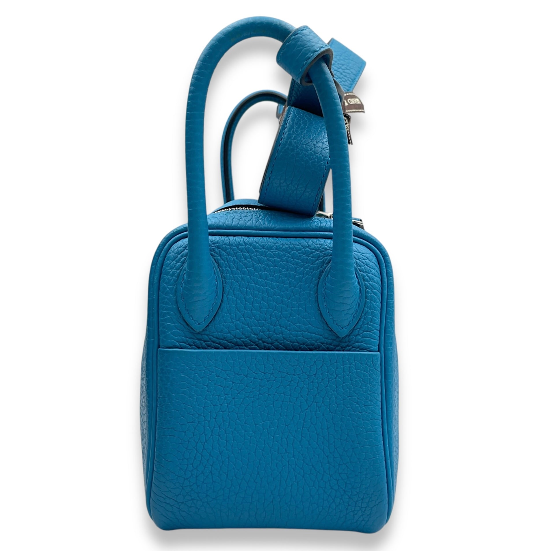 • (Purely handmade customization, 10-15 days construction period) HermèsLindy Mini Blue Frida in Clemence, Palladium hardware