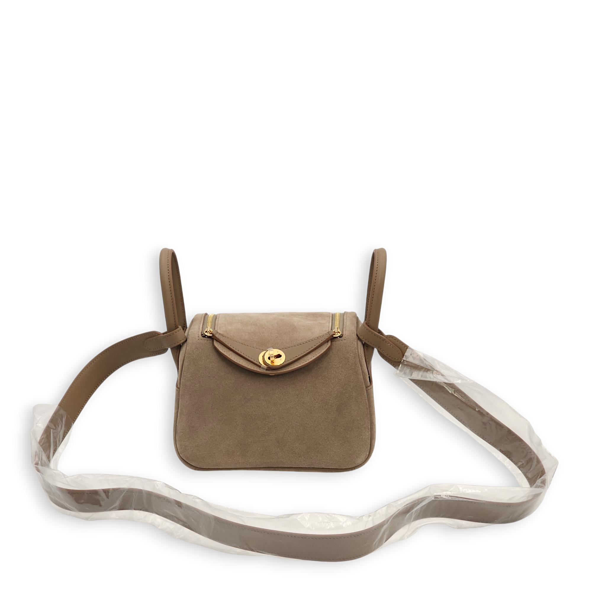 Herm�s Lindy Mini Gris Caillou/Etoupe in Swift, Gold hardware Bags Crossbody Bag Grey Brand New MEN UNISEX