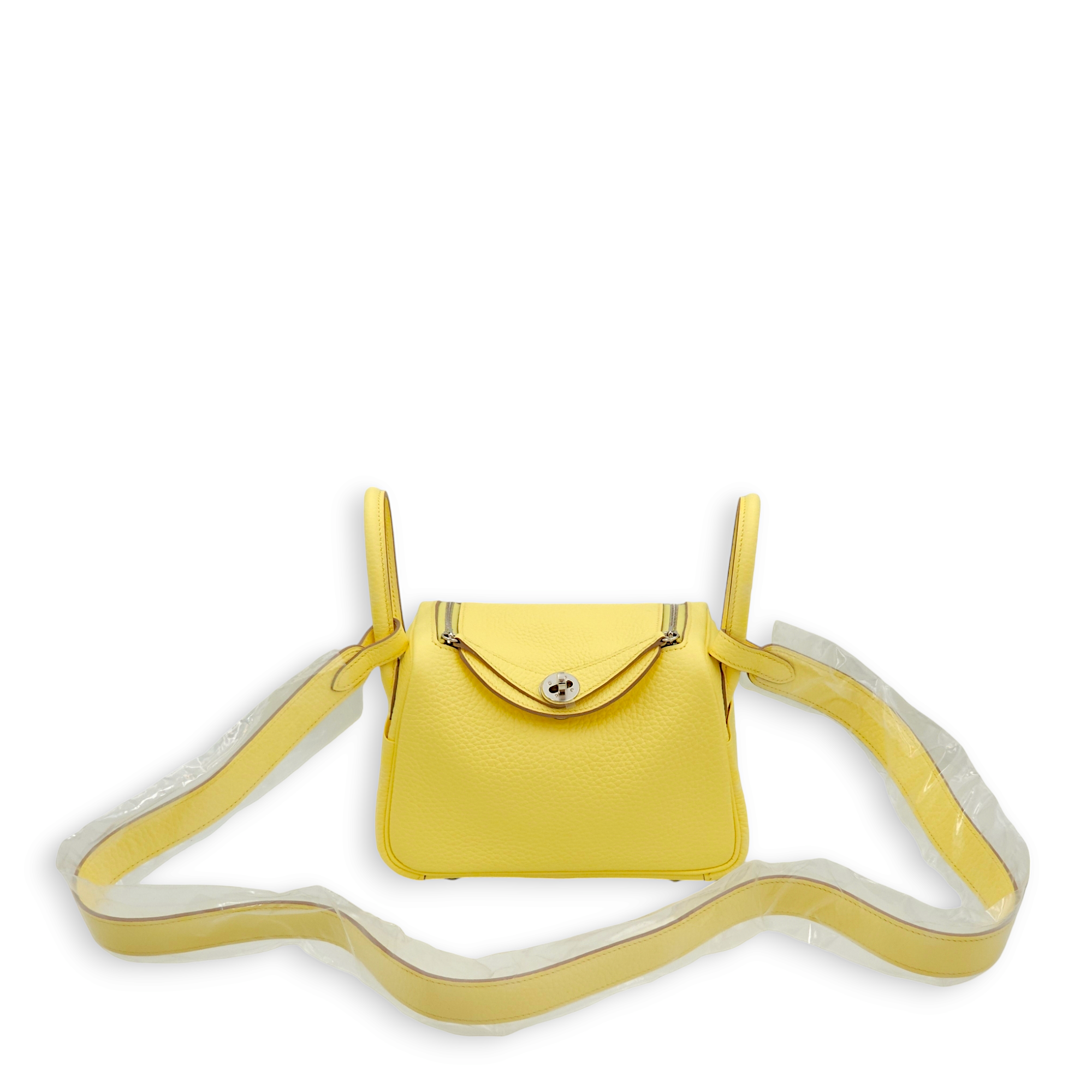 Herm�s Lindy Mini Limoncello in Clemence, Palladium hardware Bags Crossbody Bag Yellow Brand New MEN UNISEX
