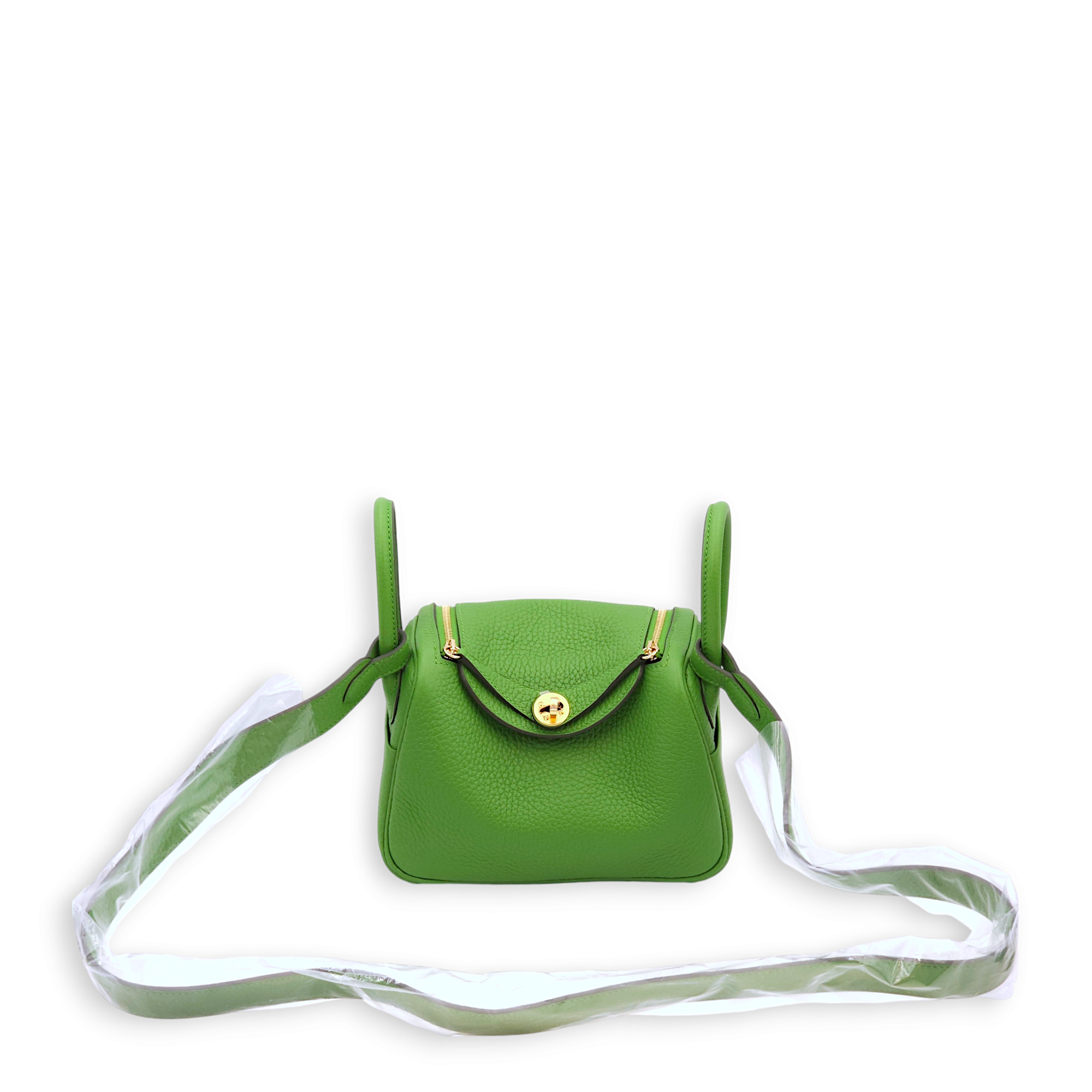 Herm�s Lindy Mini Vert Yucca in Clemence, Gold hardware Bags Crossbody Bag Green Brand New MEN UNISEX