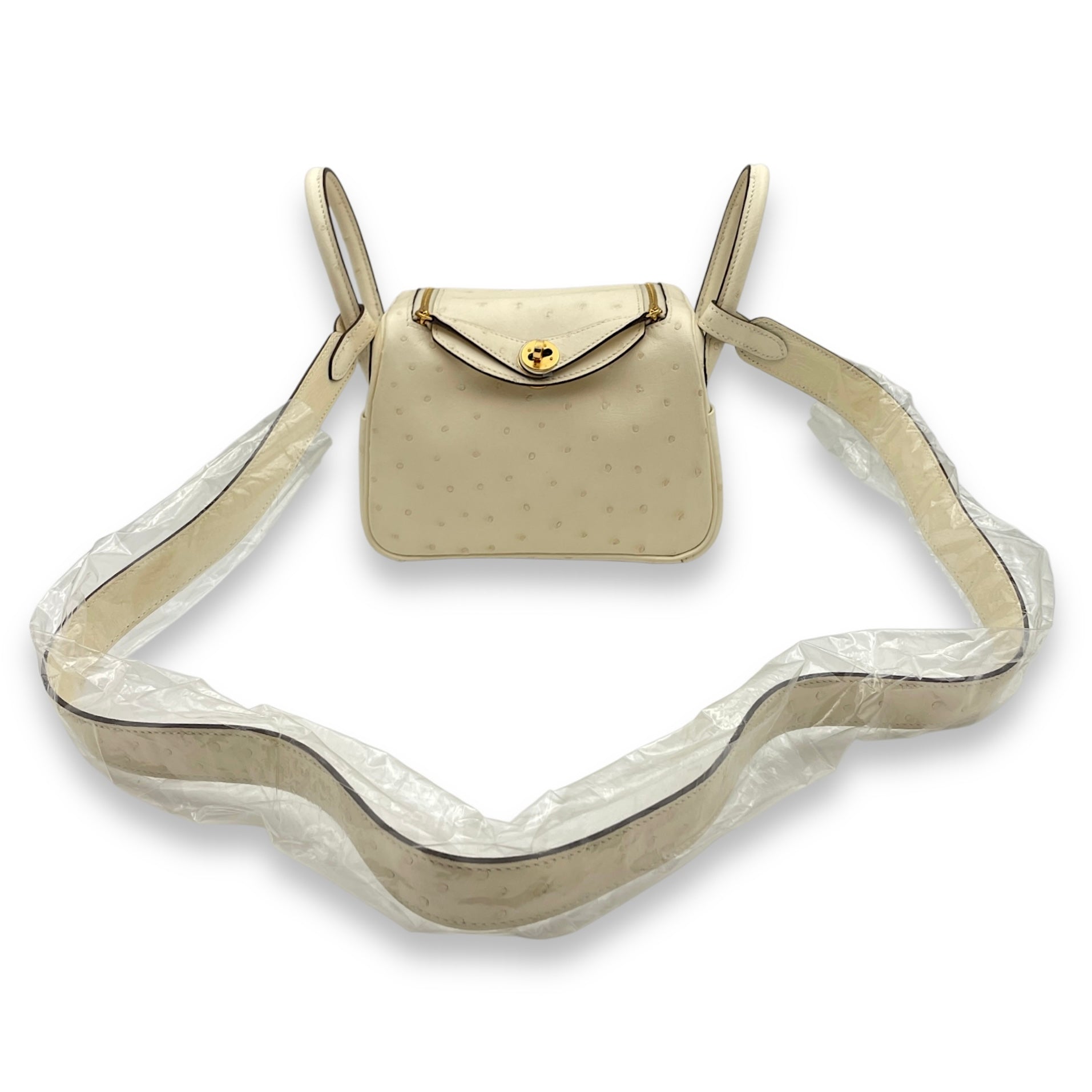 Hermès Lindy Mini Nata in Ostrich, Gold hardware Bags Top Handle Bag Nata White Brand New