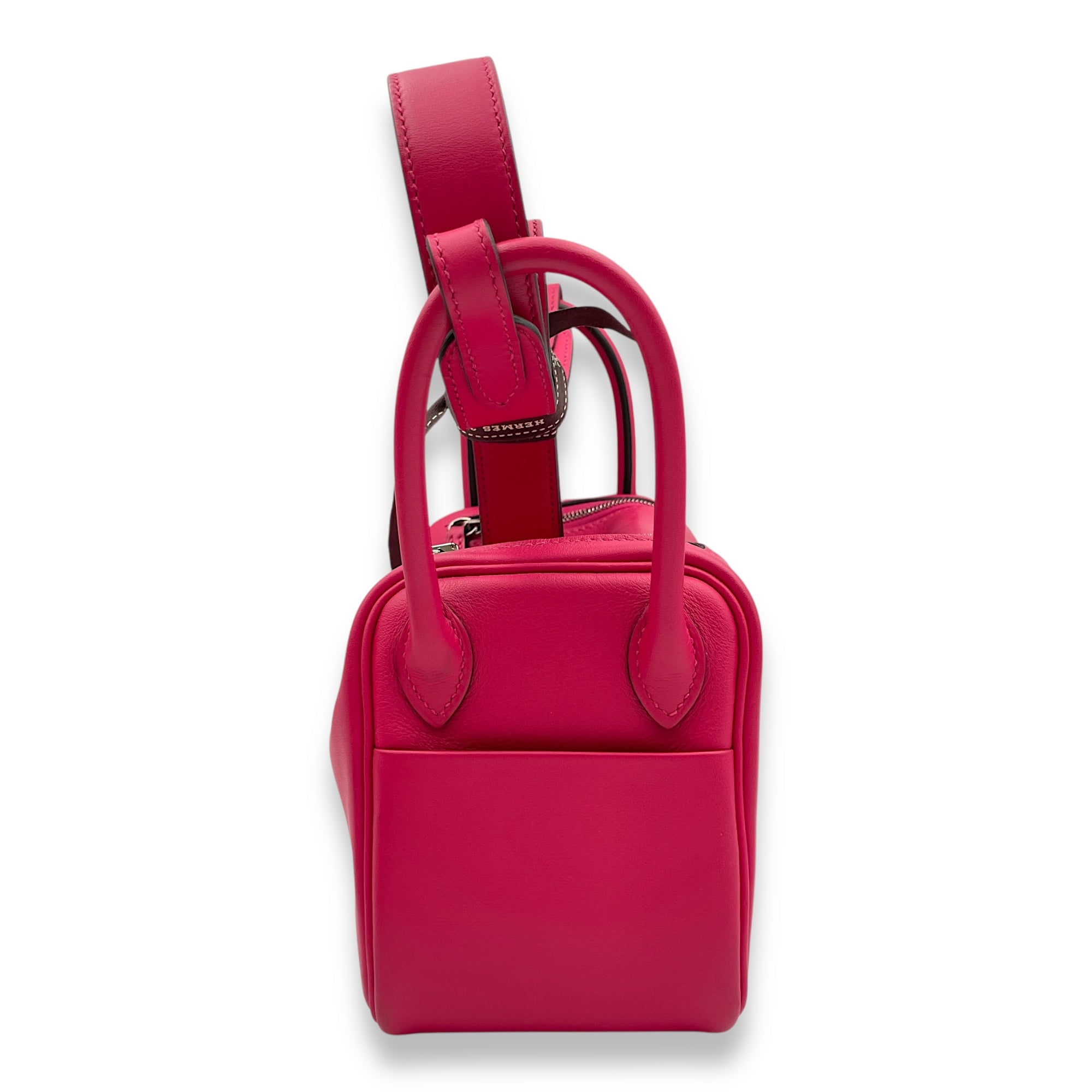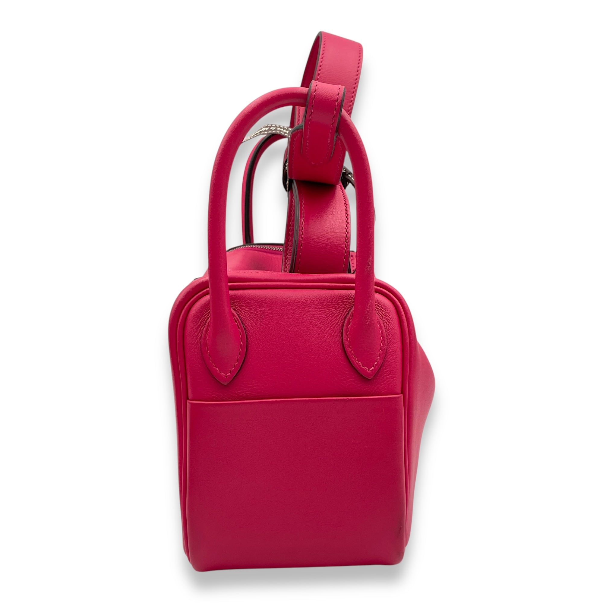 (Purely handmade customization, 10-15 days construction period) HermèsLindy Mini Rose Mexico/Rouge Piment in Swift, Palladium hardware