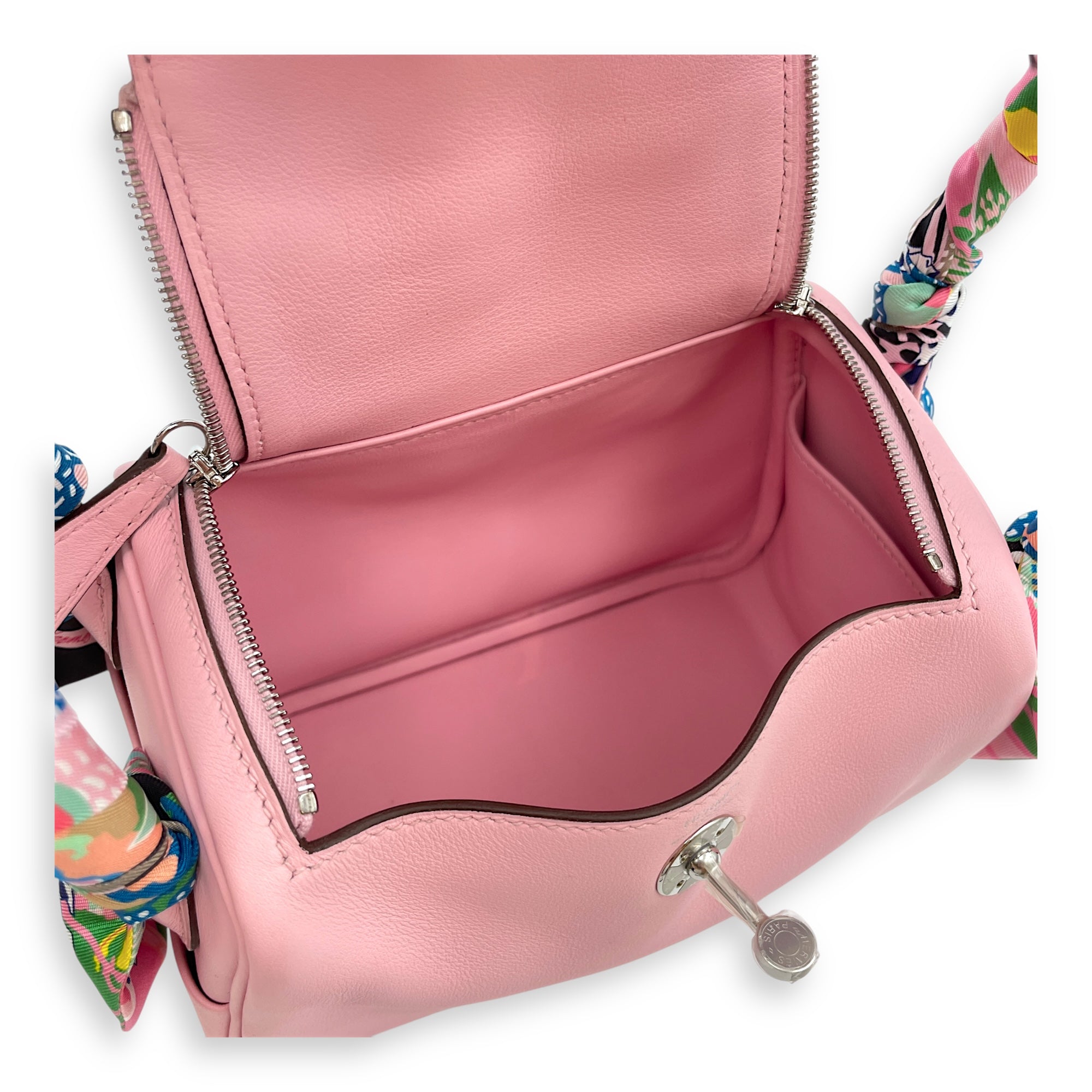 Hermès Lindy Mini Rose Sakura in Swift, Palladium hardware Bags Crossbody Bag Rose Sakura Pink Like New Condition