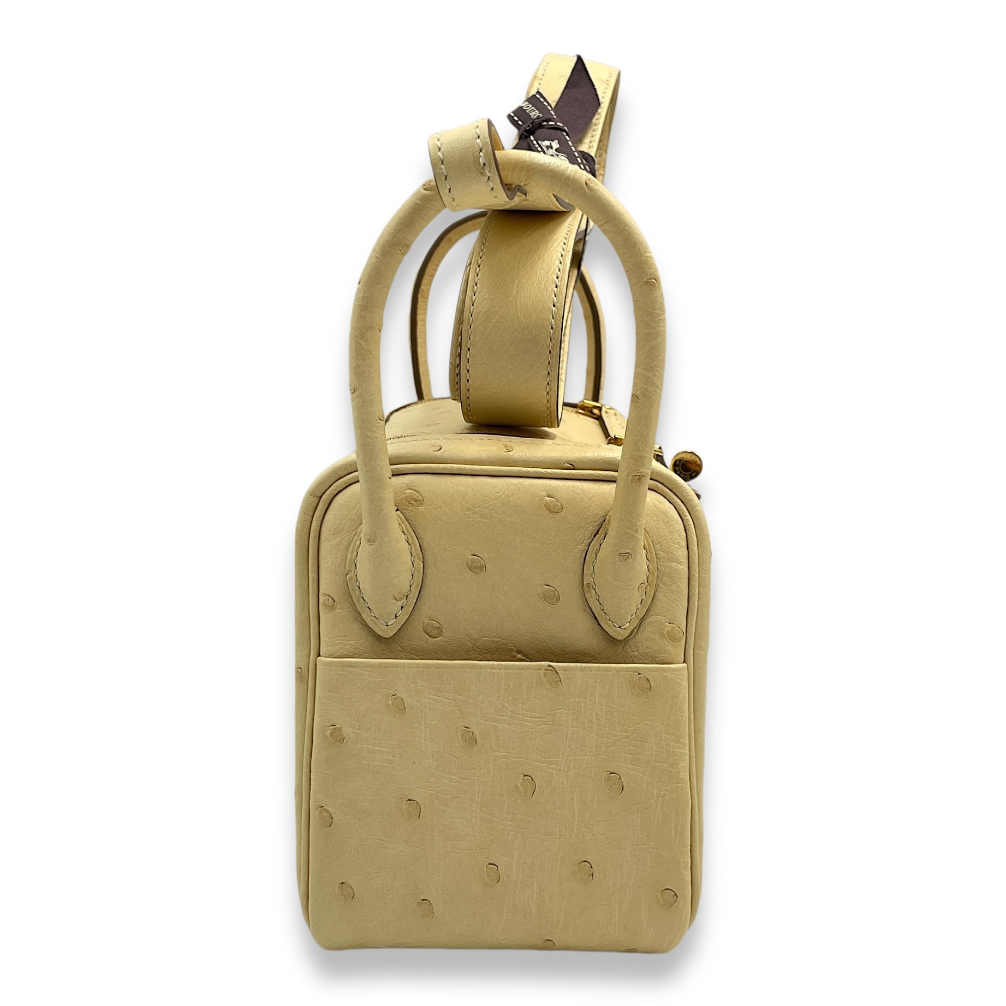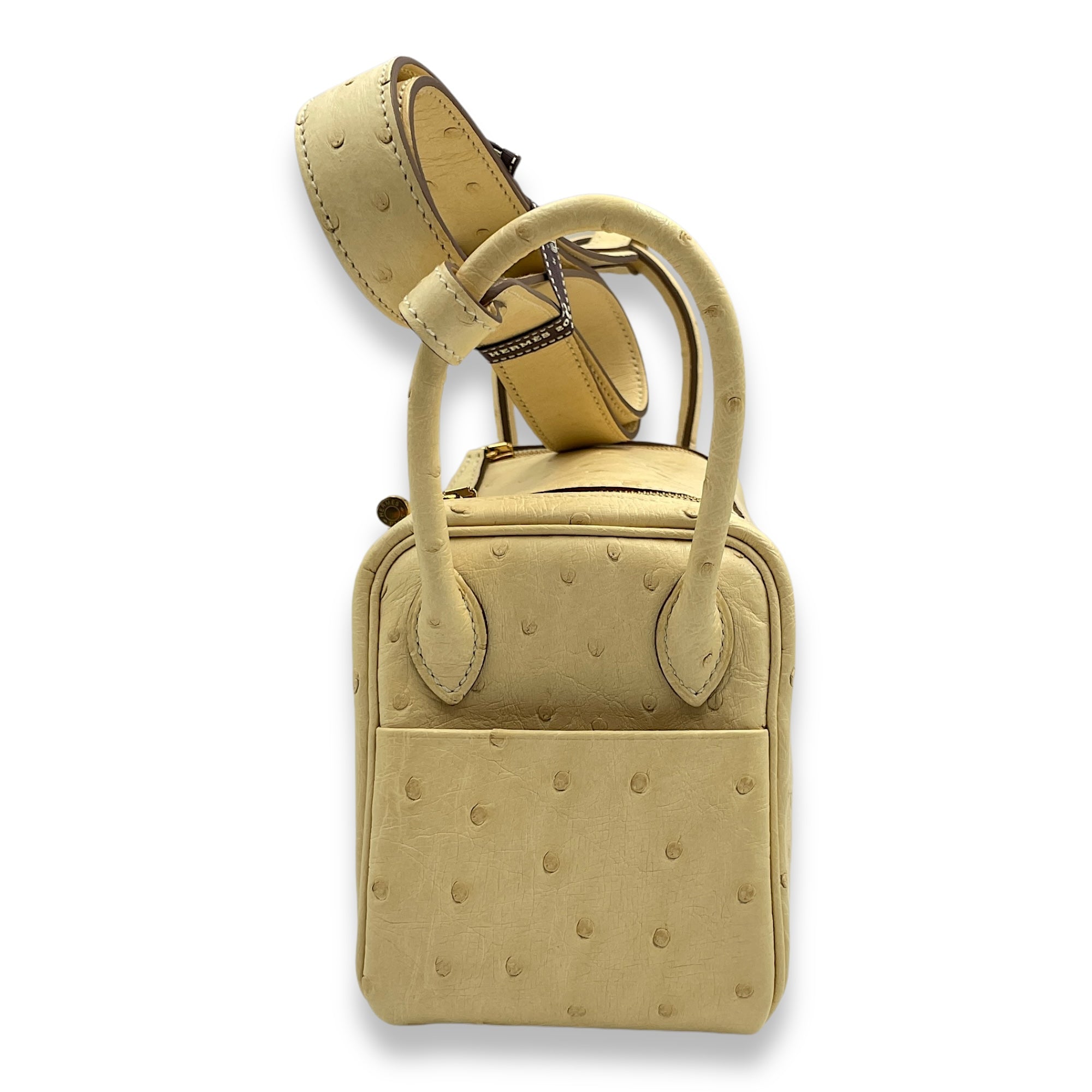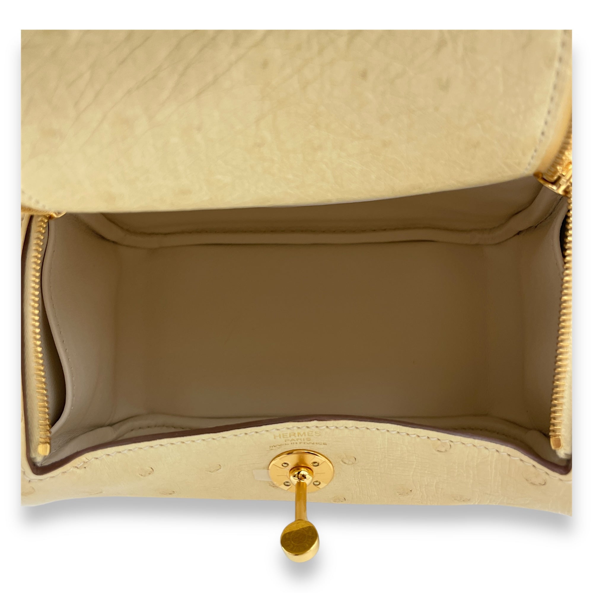 Hermès Lindy Mini Vanille in Ostrich, Gold hardware Bags Crossbody Bag Vanille Yellow Like New