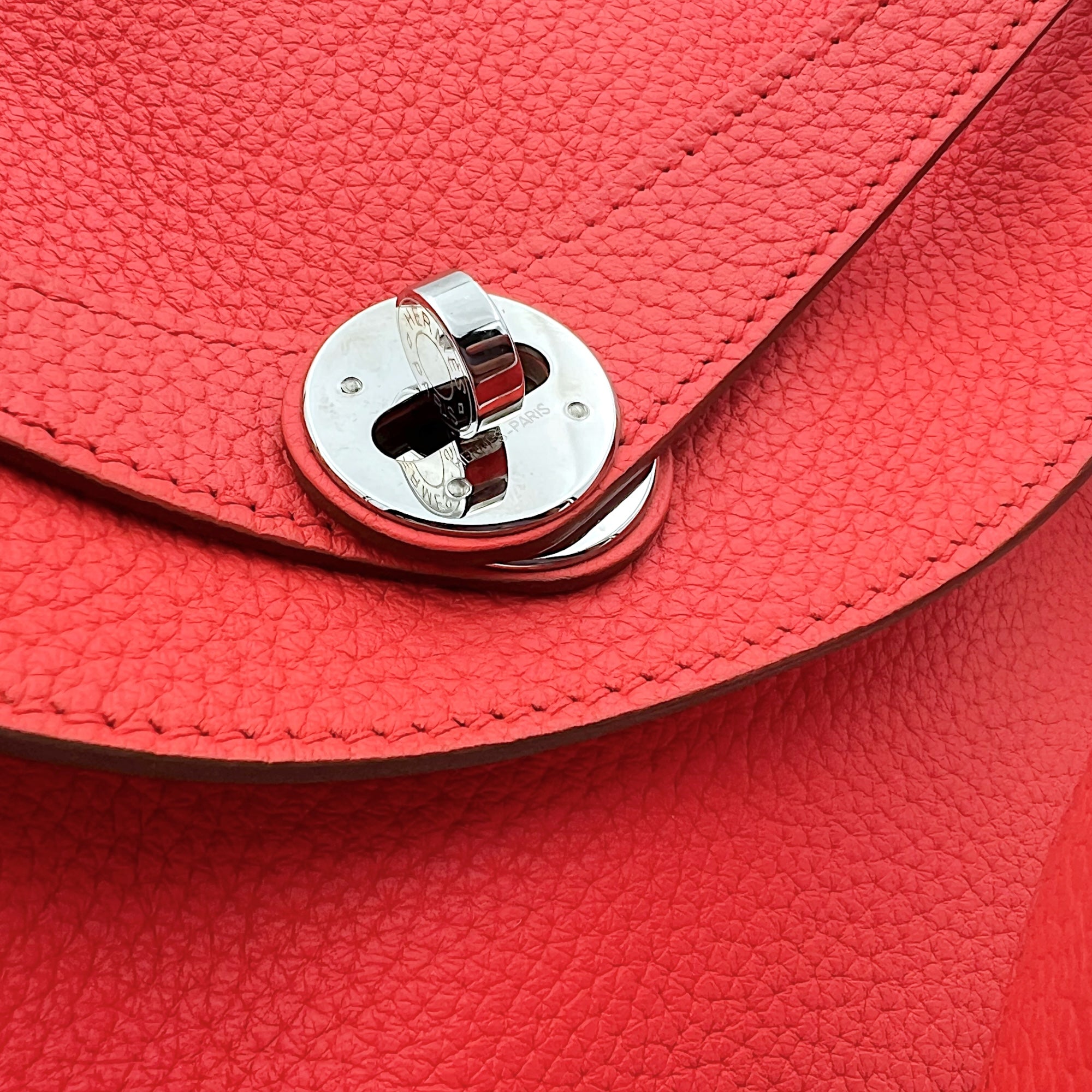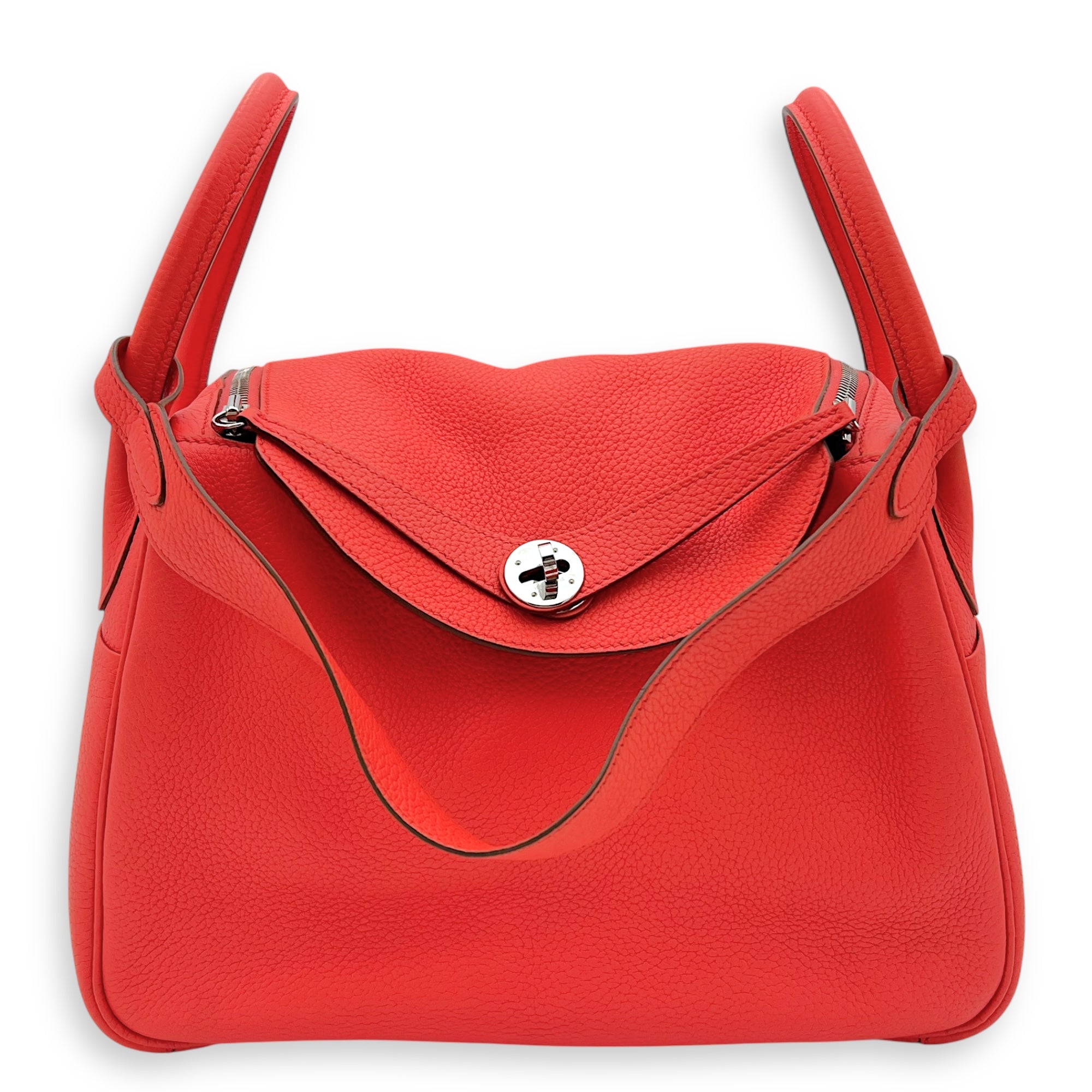 Bags Hermès Lindy 30 Capucine Top Handle Bag in Clemence, Palladium hardware Very Good Condition Capucine Orange Top Handle Bag Women Lady Girl
