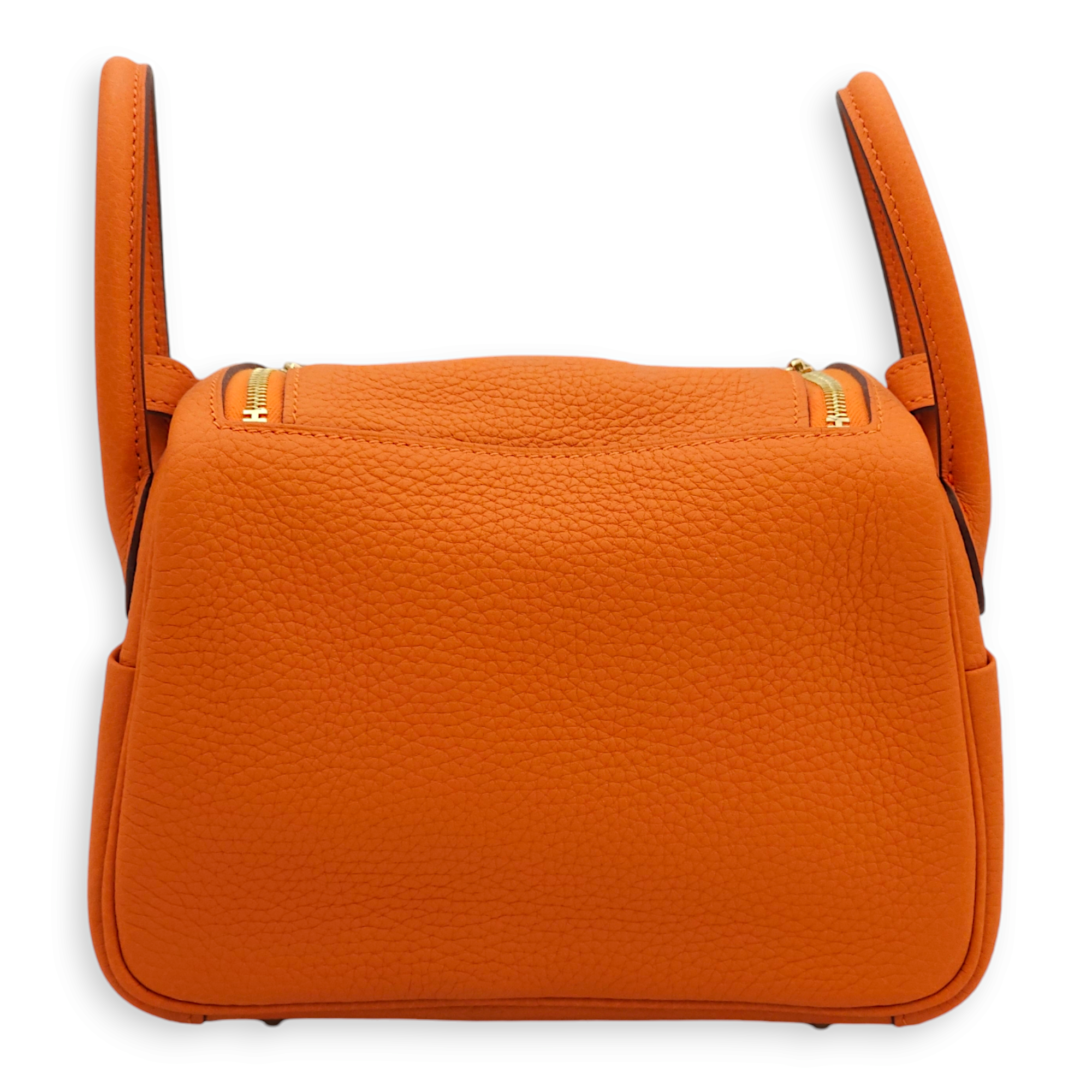 (Purely handmade customization, 10-15 days construction period) HermèsLindy Mini Orange in Clemence, Gold hardware