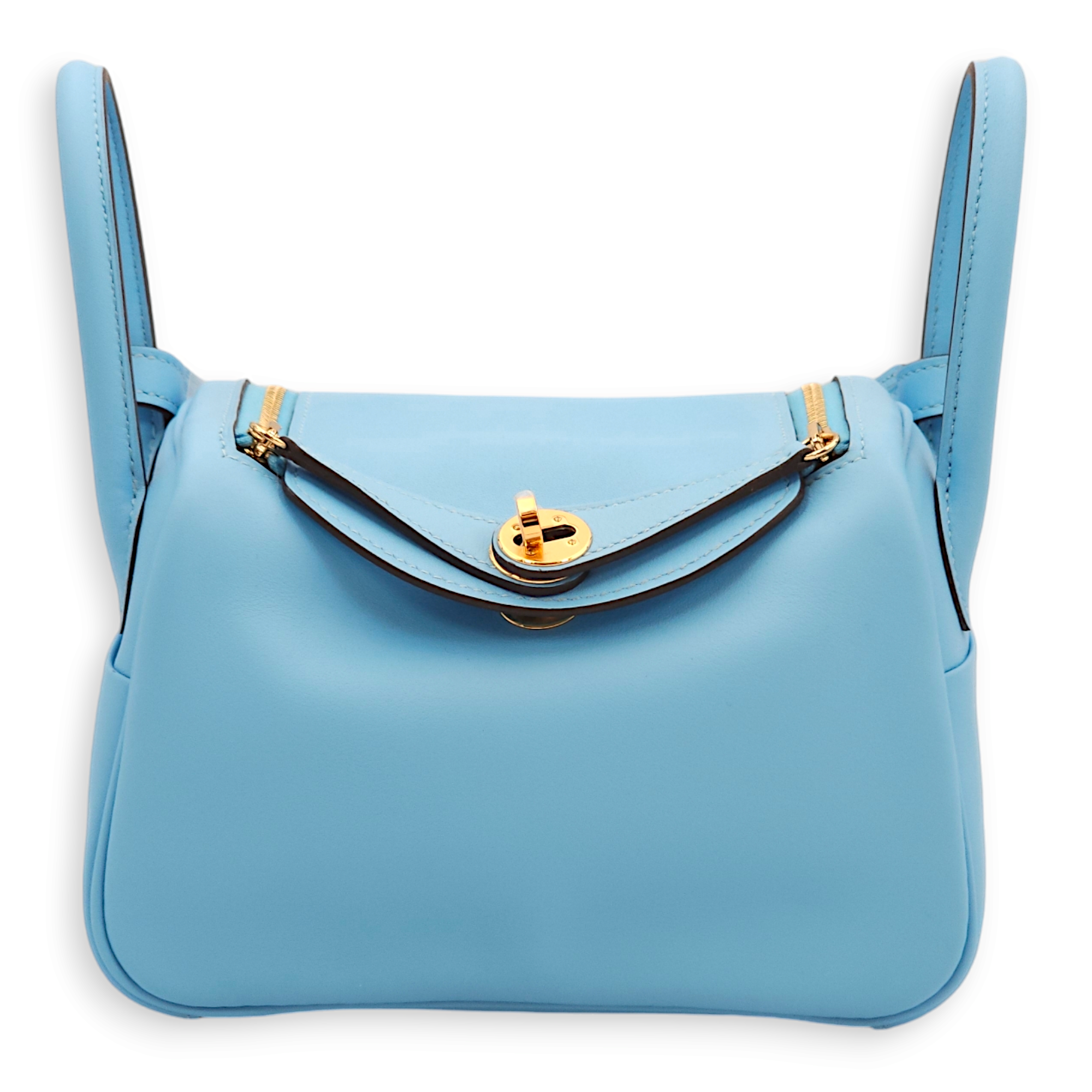 (Purely handmade customization, 10-15 days construction period) HermèsLindy Mini Celeste in Swift, Gold hardware