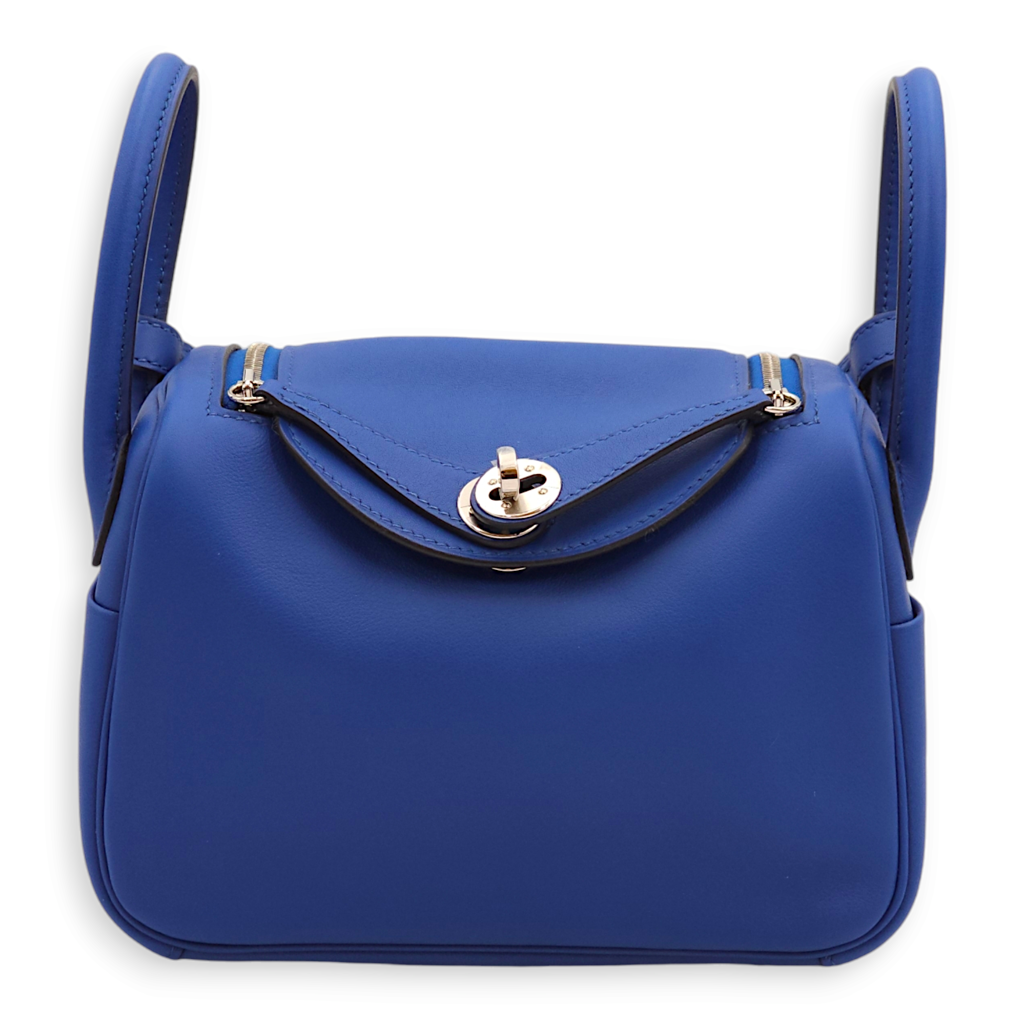 (Purely handmade customization, 10-15 days construction period) HermèsLindy Verso Mini Blue France/Blue Sapphire in Swift, Palladium hardware