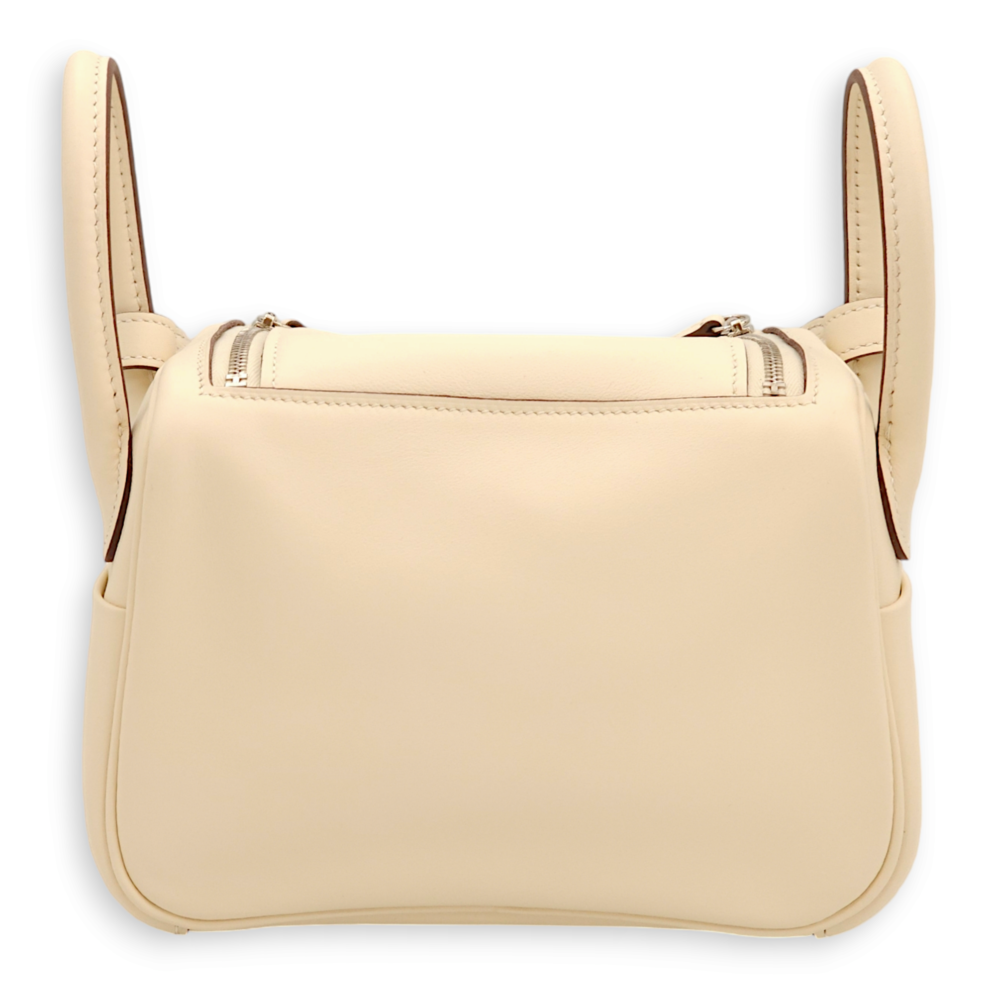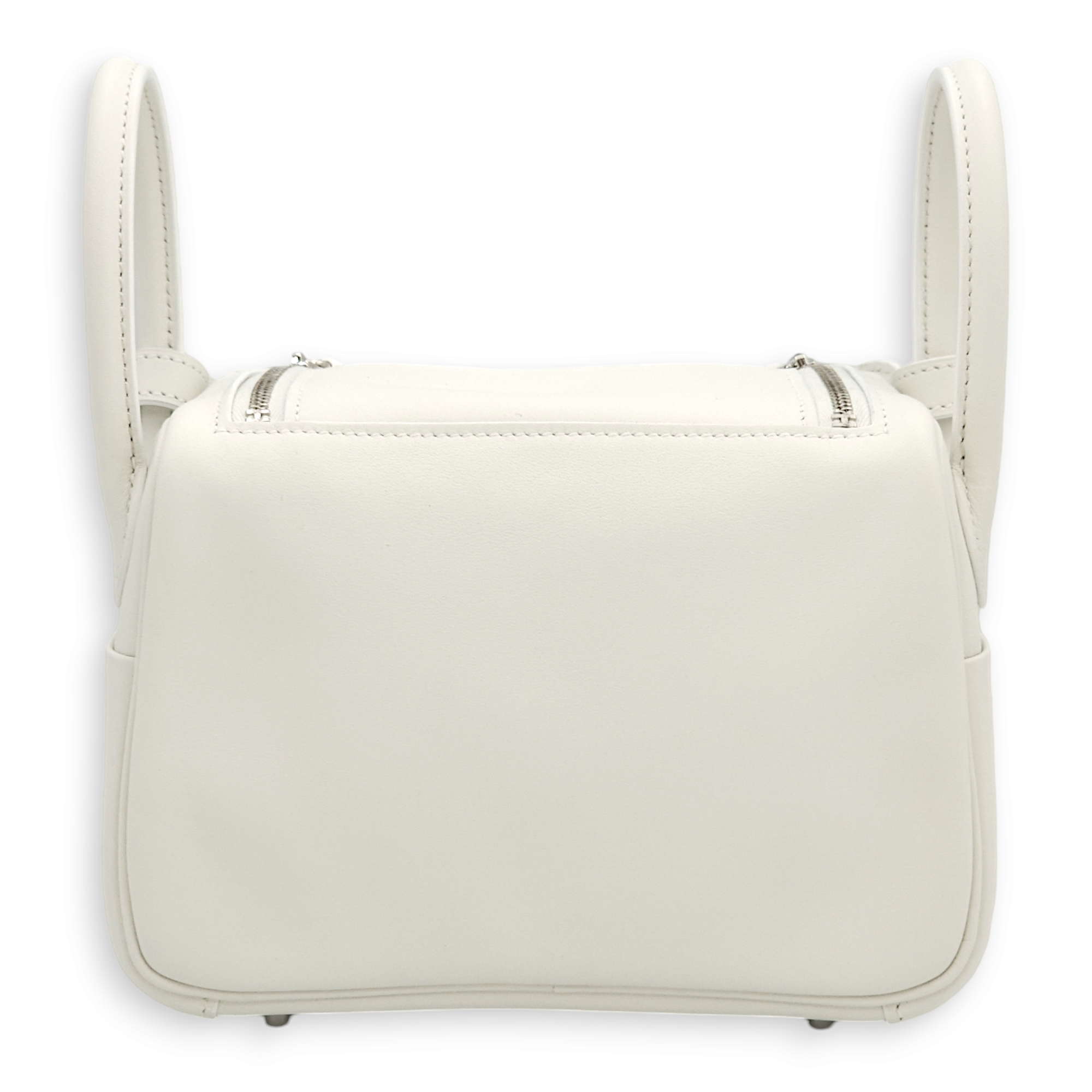 (Purely handmade customization, 10-15 days construction period) HermèsLindy Mini Blanc in Swift, Palladium hardware