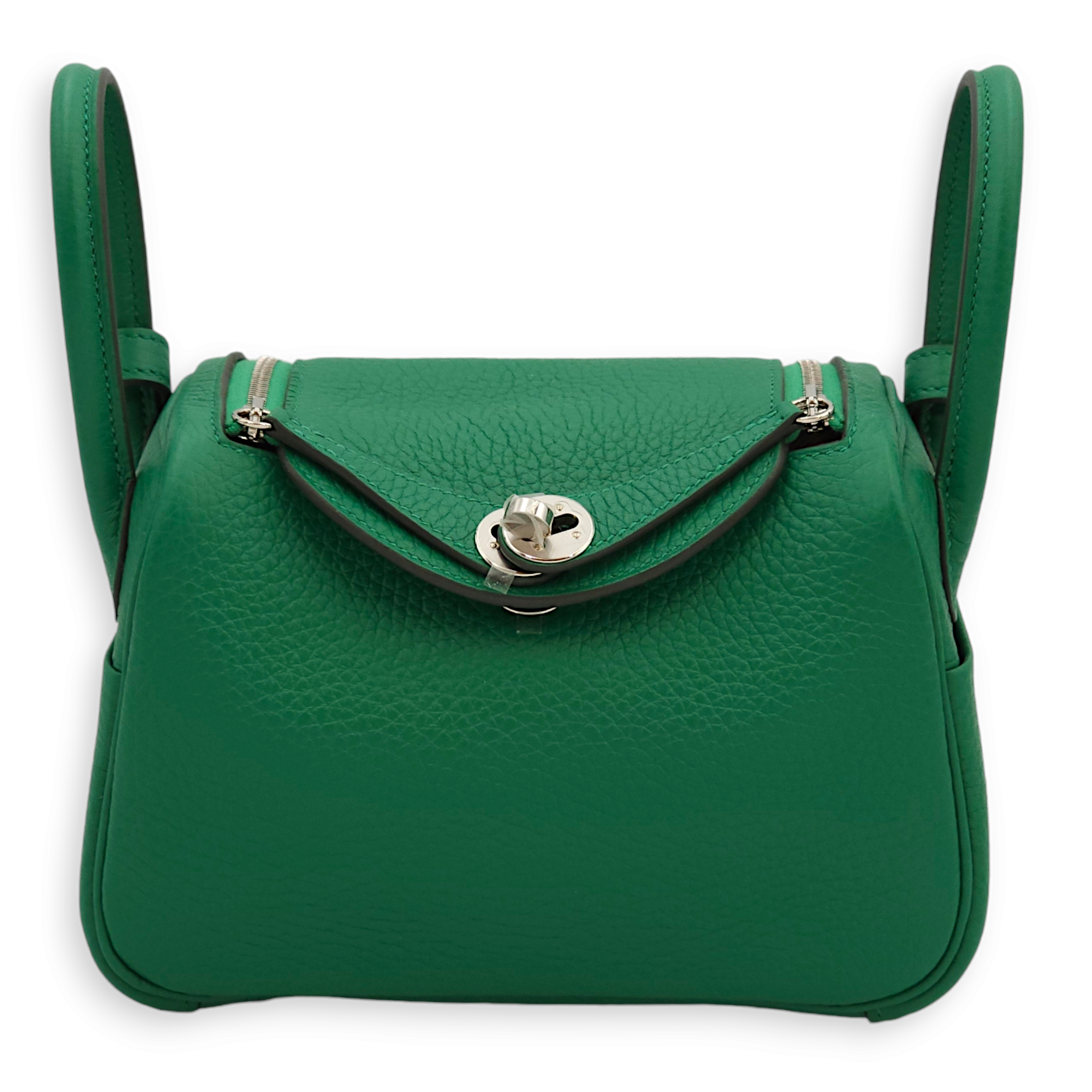 (Purely handmade customization, 10-15 days construction period) HermèsLindy Mini II Vert Vertigo in Clemence, Palladium hardware
