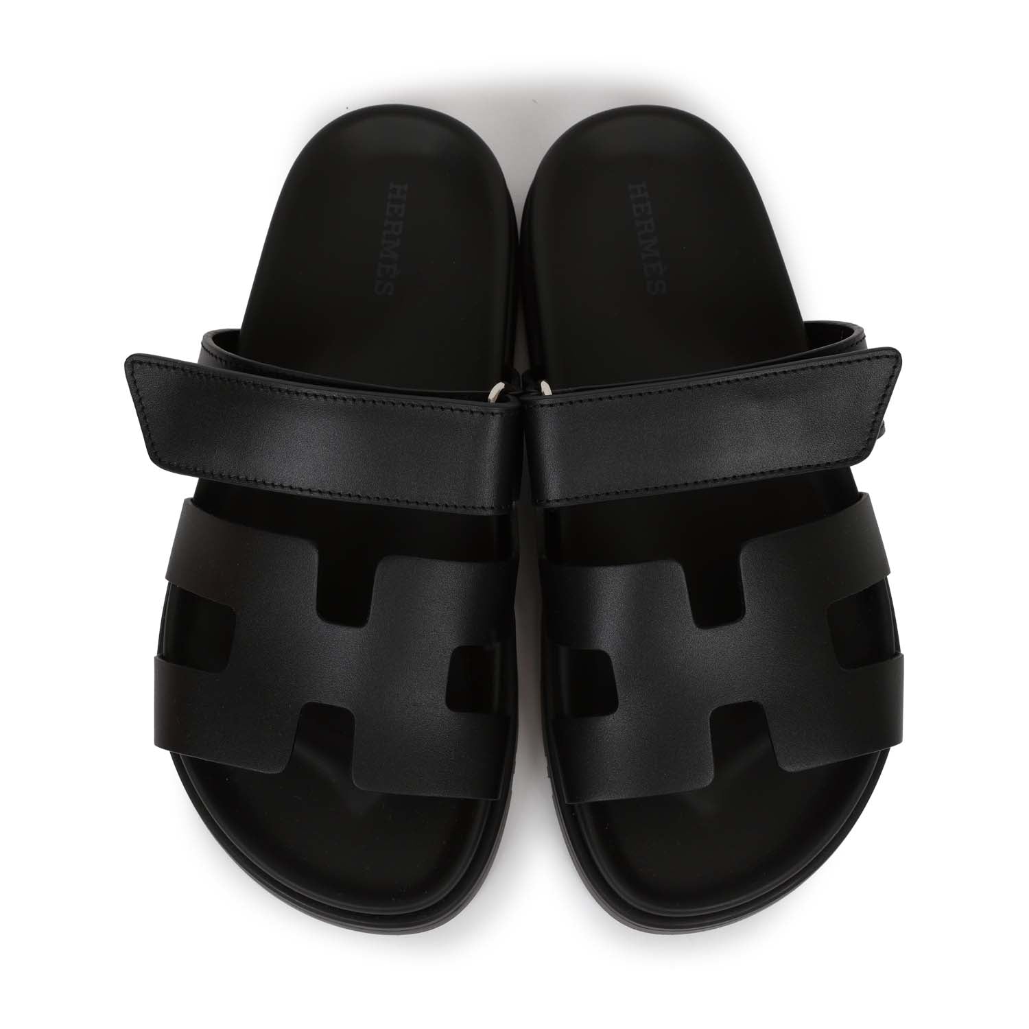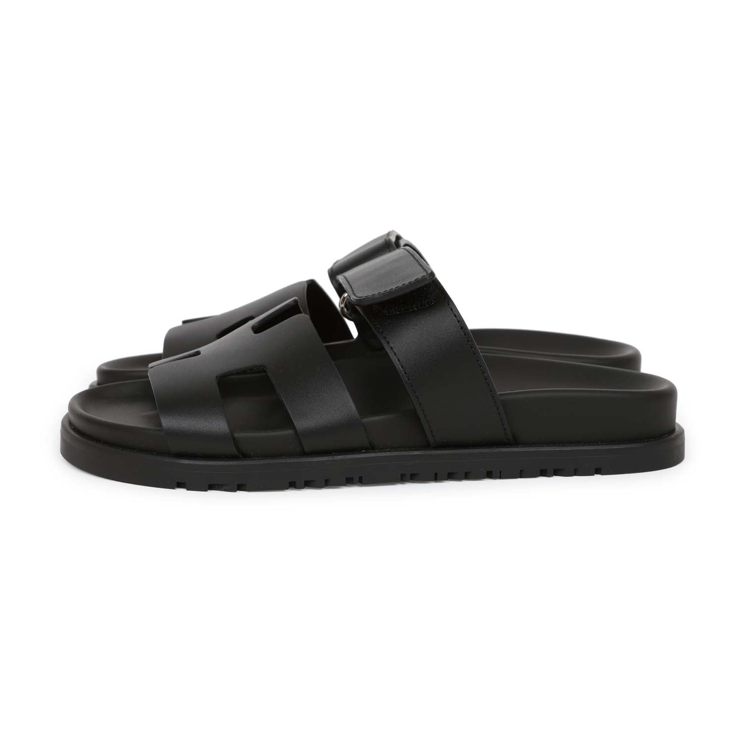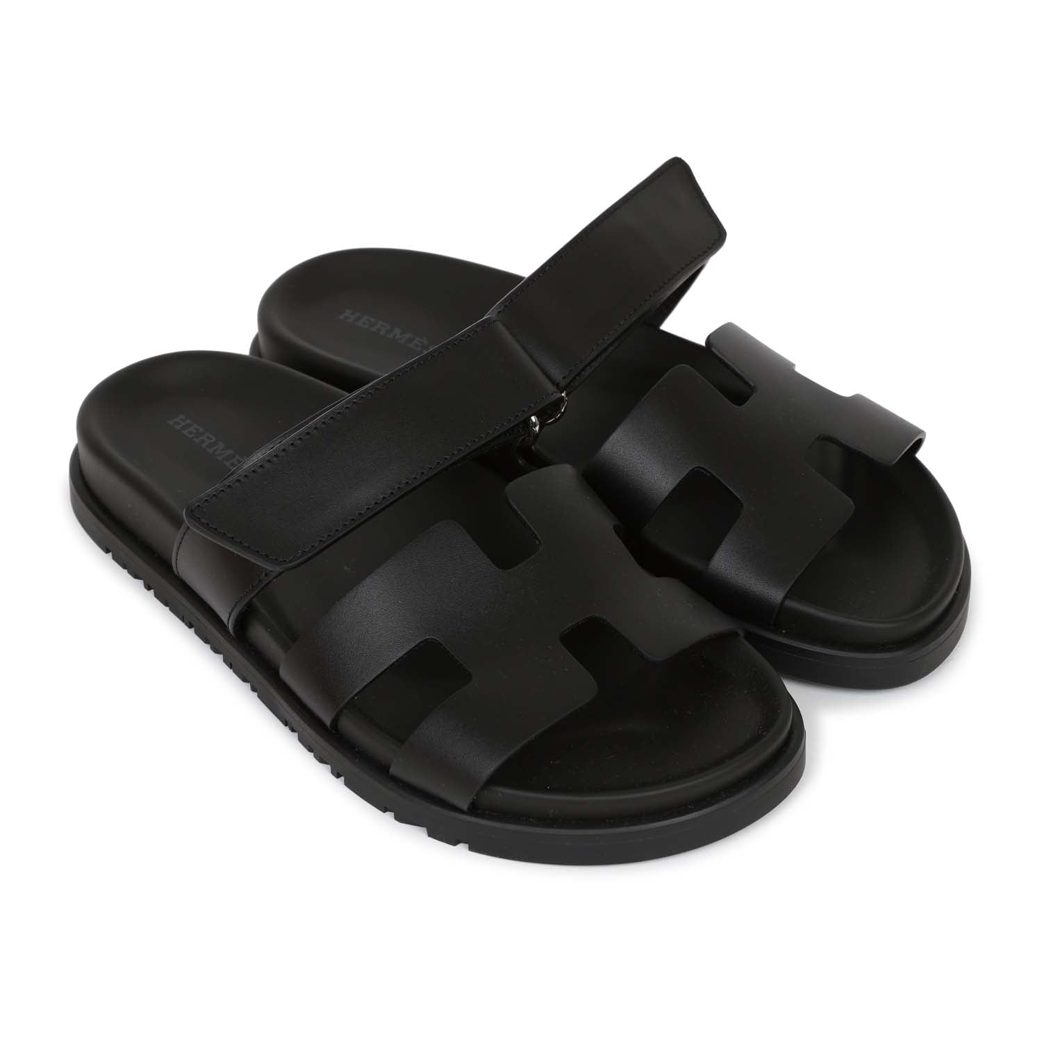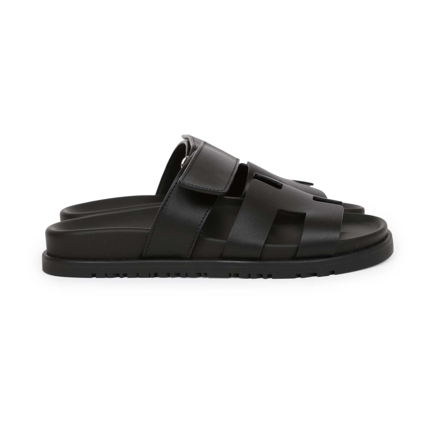 • Hermès Chypre Techno Sandals Black Calfskin Palladium Hardware