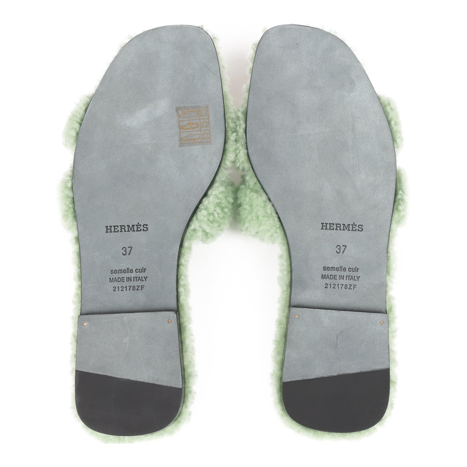 This pair of Oran Sandals are in Vert D'eau woolskin and feature the iconic H crossover strap.