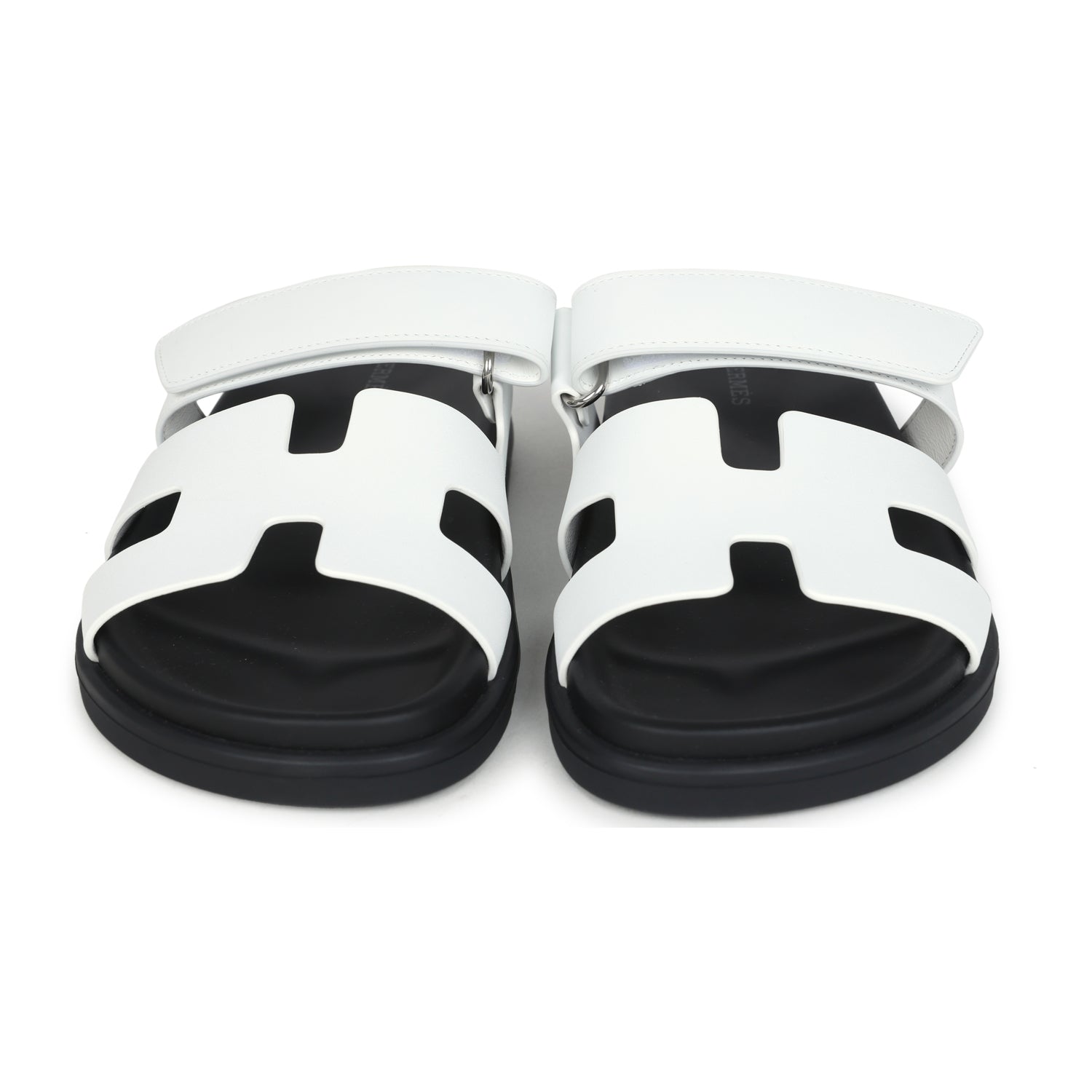 Hermès Chypre Sandals White Calfskin Palladium Hardware