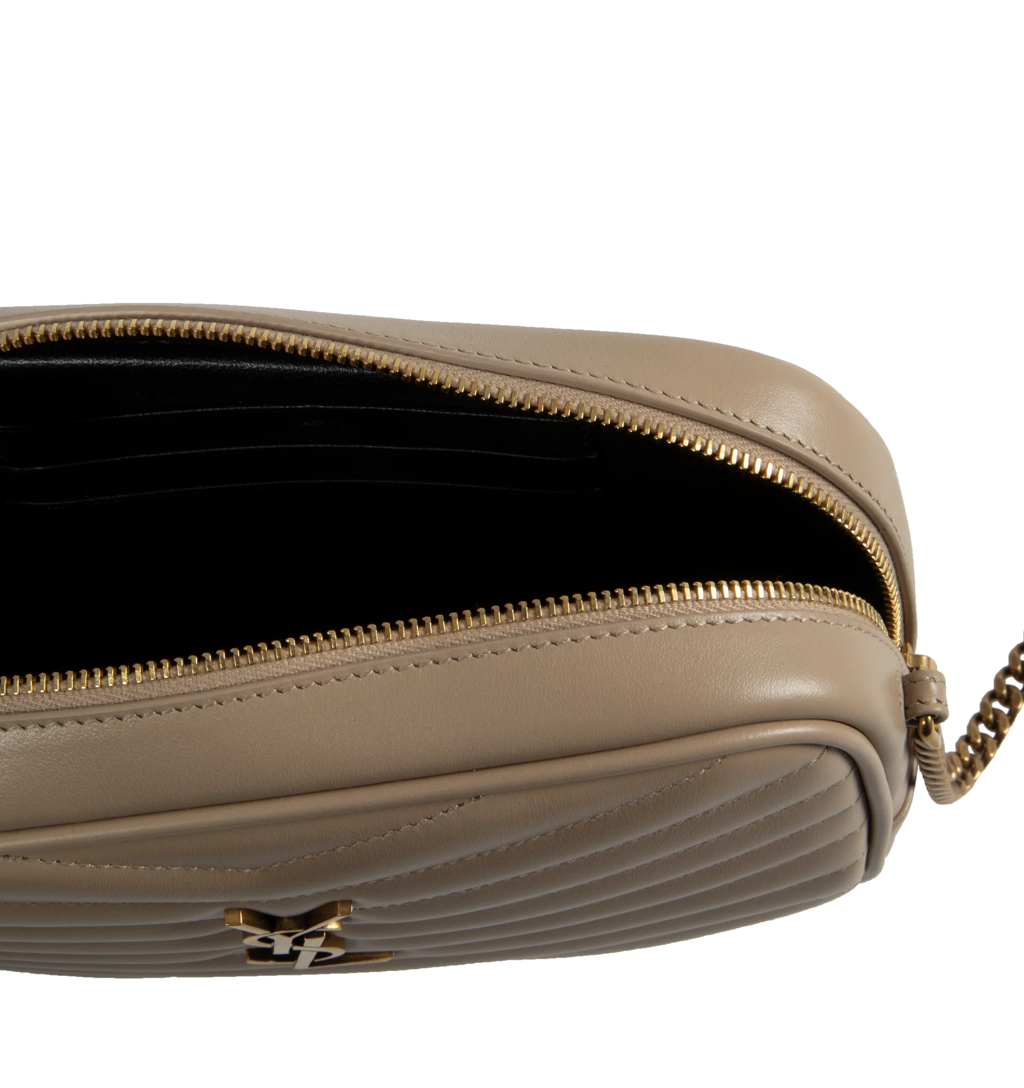 SAINT LAURENT Mini Lou with Chain featuring zip closure, back slip pocket, three card slots and leather lining. 7.5 X 4.1 X 2 inches. 100% calfskin.
