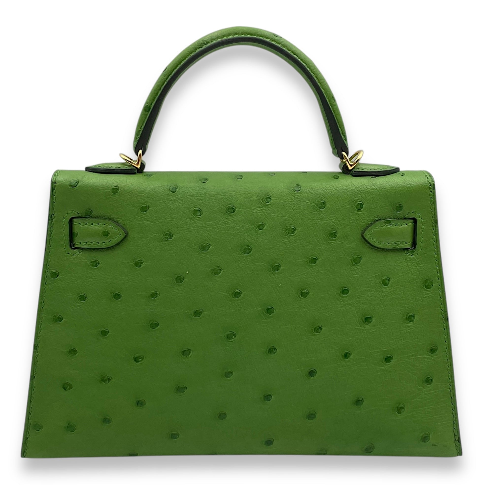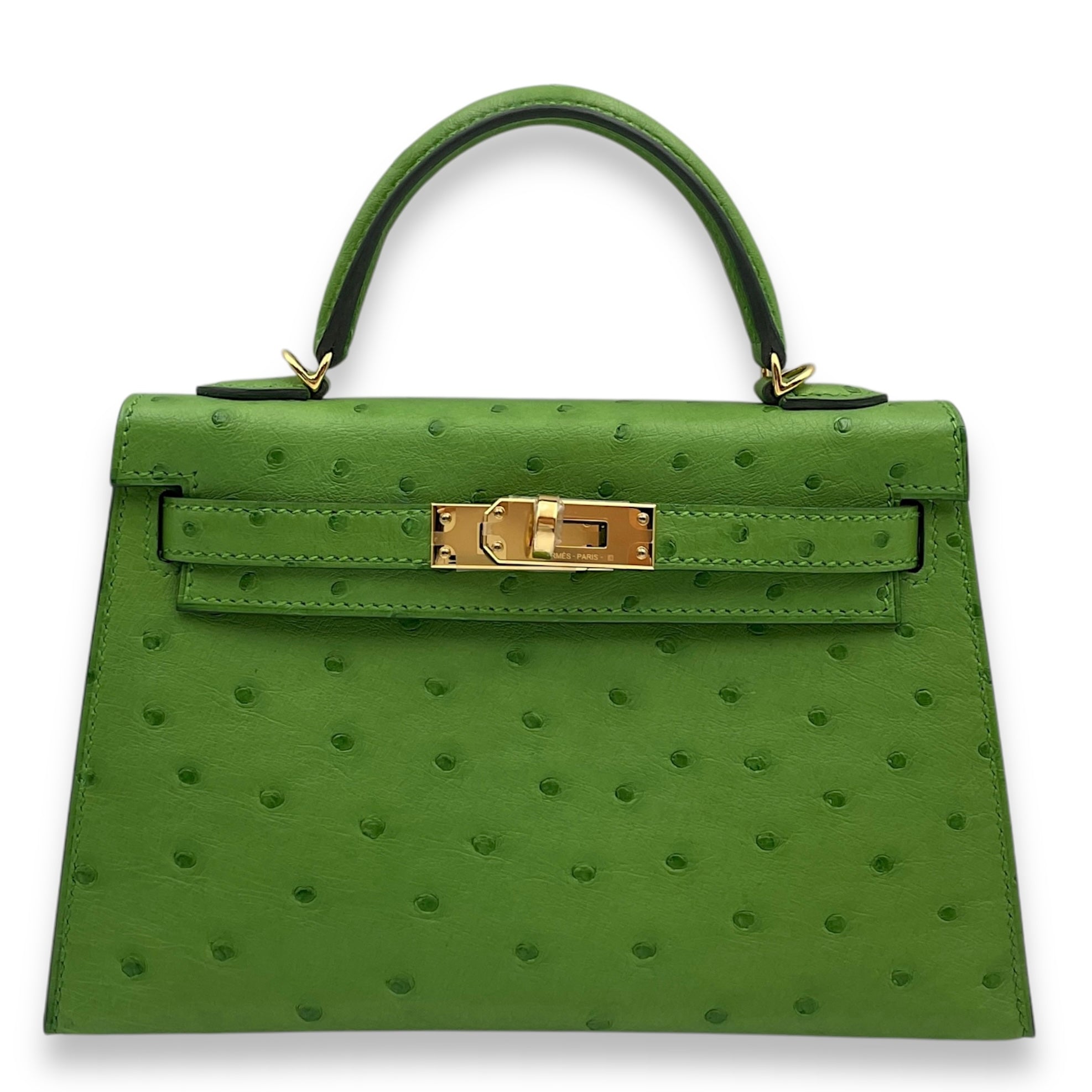 (Purely handmade customization, 10-15 days construction period)Hermès Kelly 20 Vert Yucca in Ostrich, Gold hardware