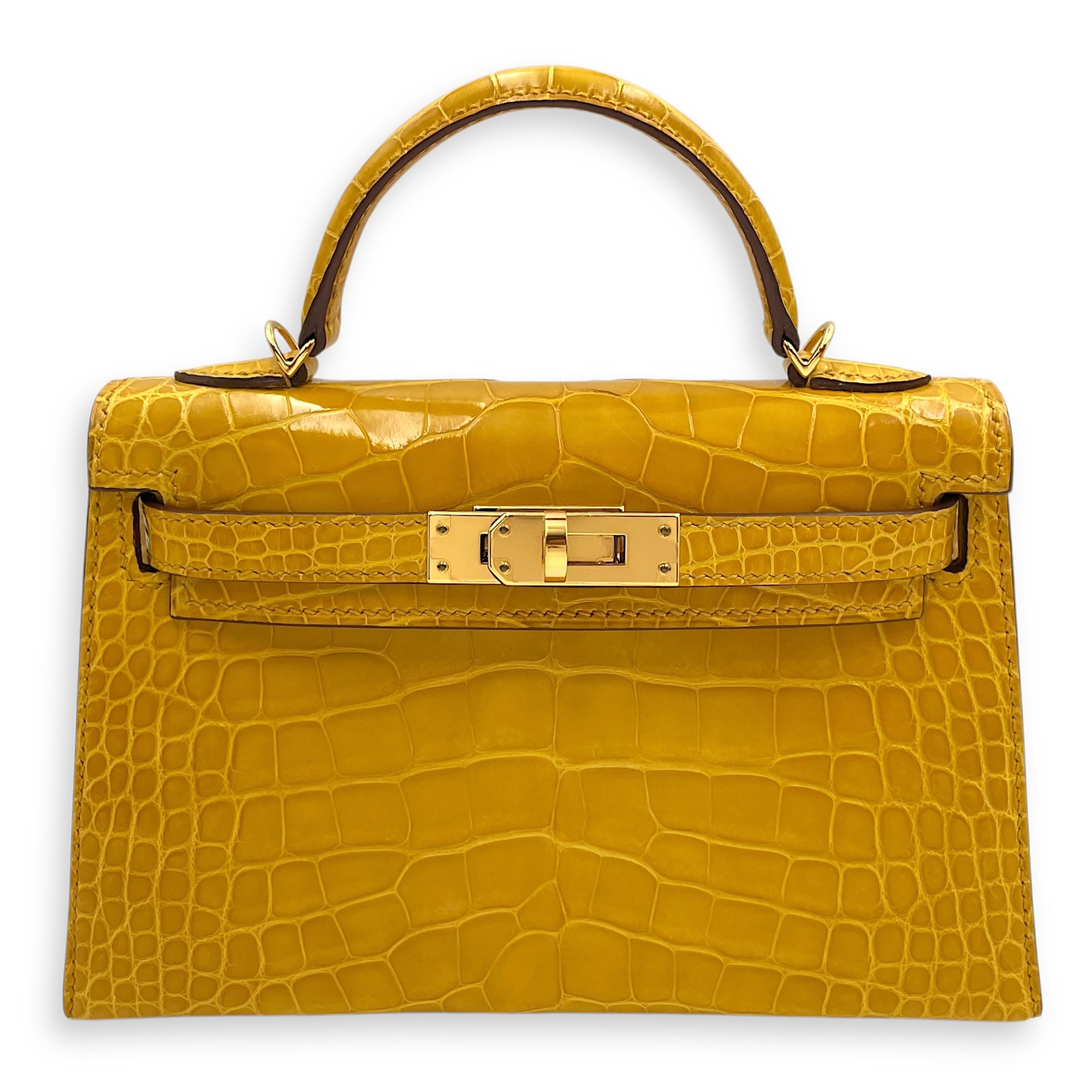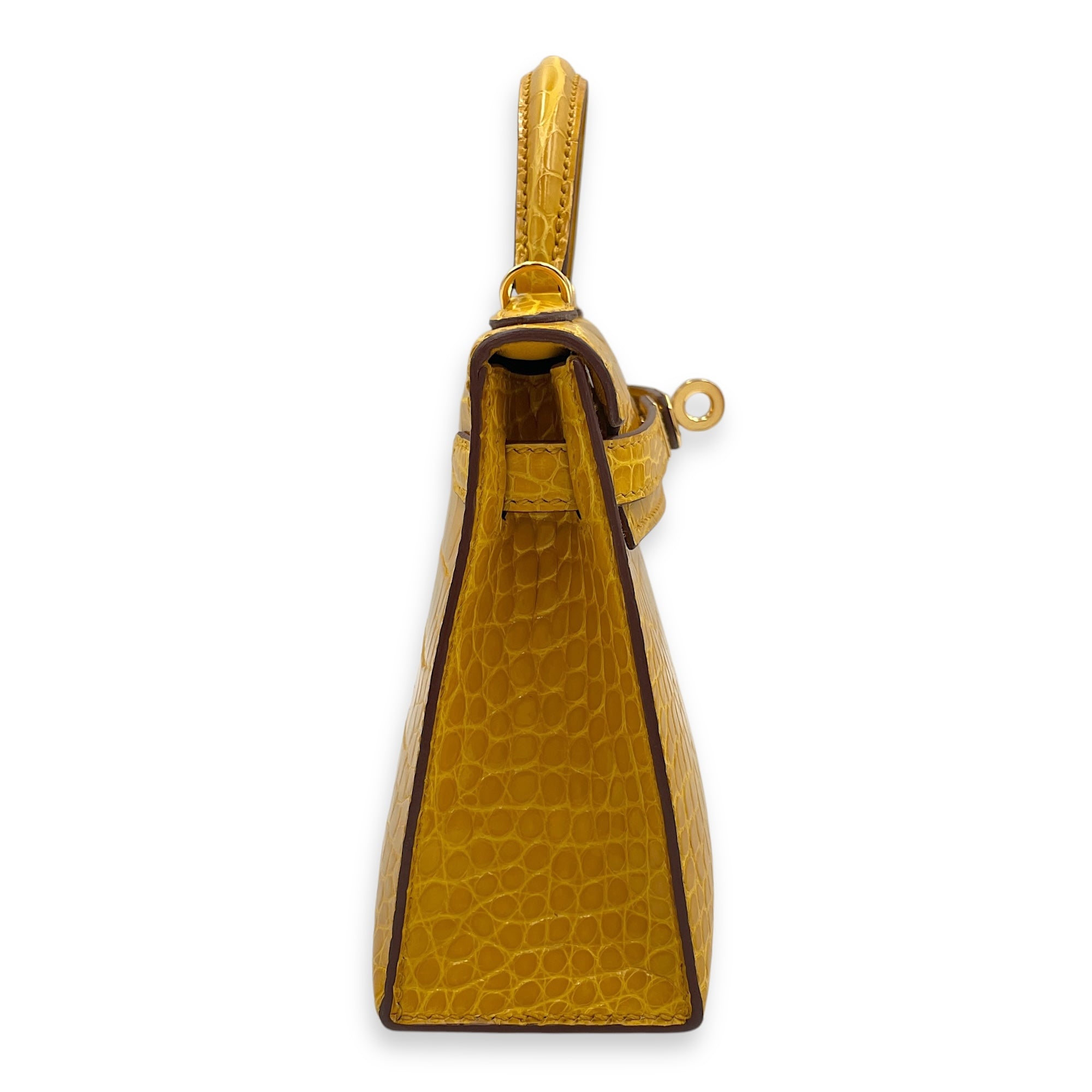 (Purely handmade customization, 10-15 days construction period)HERMÈS Sellier Kelly 20 Jaune Ambre in Shiny Alligator, Gold hardware