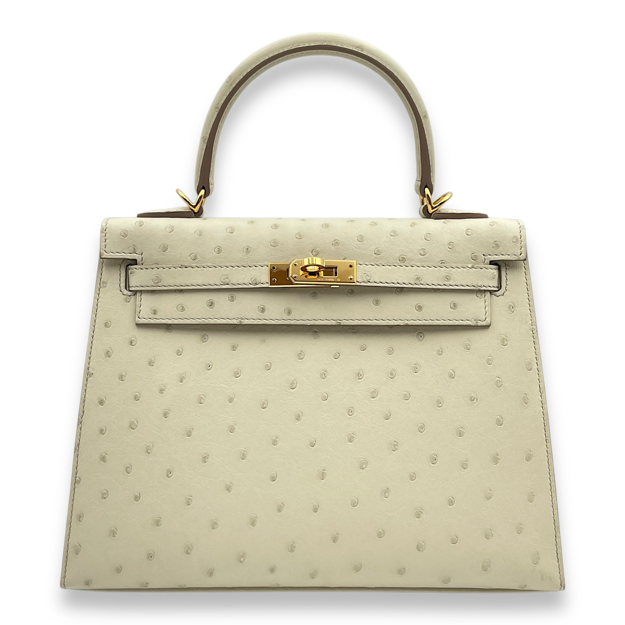 (Purely handmade customization, 10-15 days construction period)Hermès Kelly 25 Beton in Ostrich, Gold hardware
