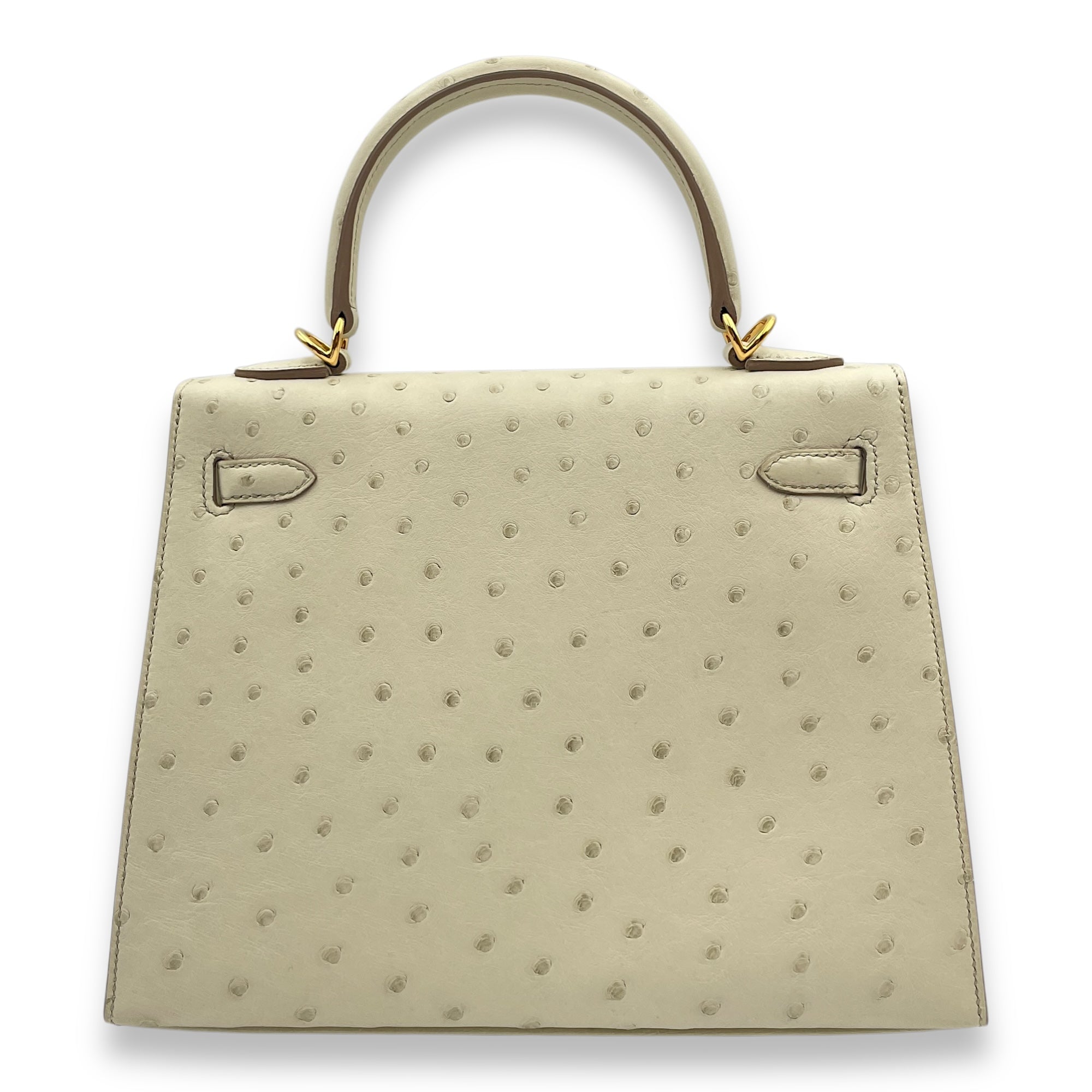 (Purely handmade customization, 10-15 days construction period) Hermes Special Order (HSS) Kelly Sellier 25 Beton Ostrich Verso Brushed Gold Hardware