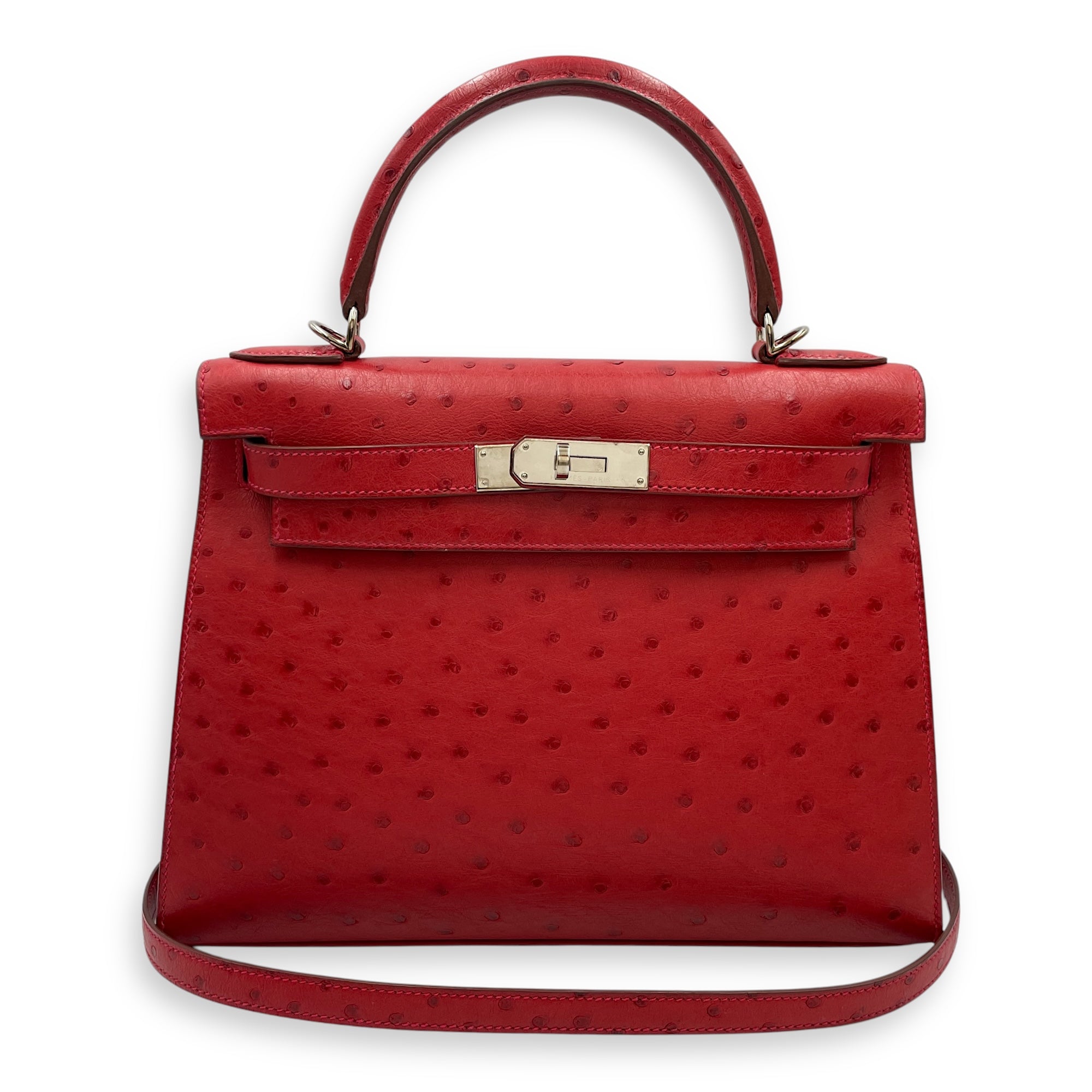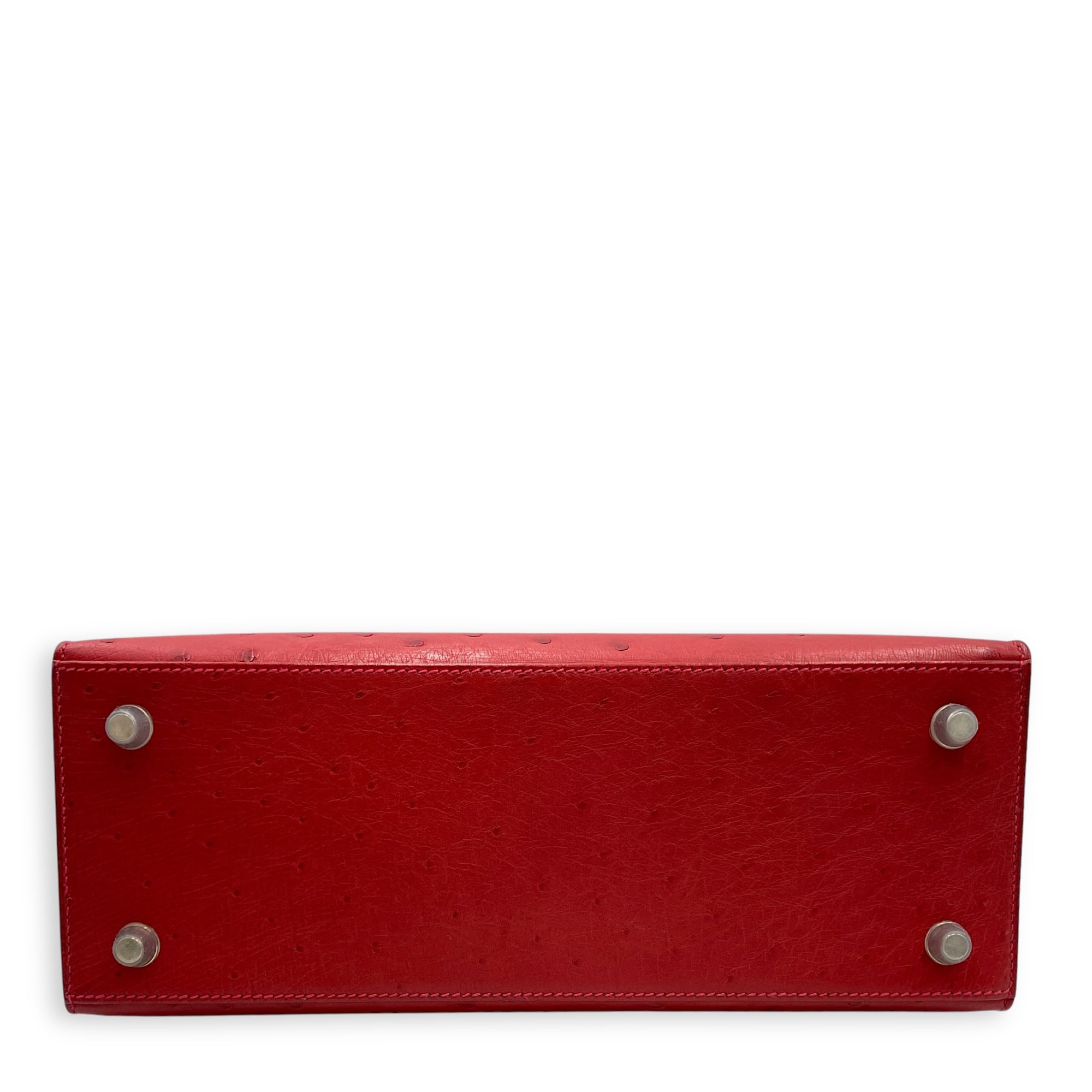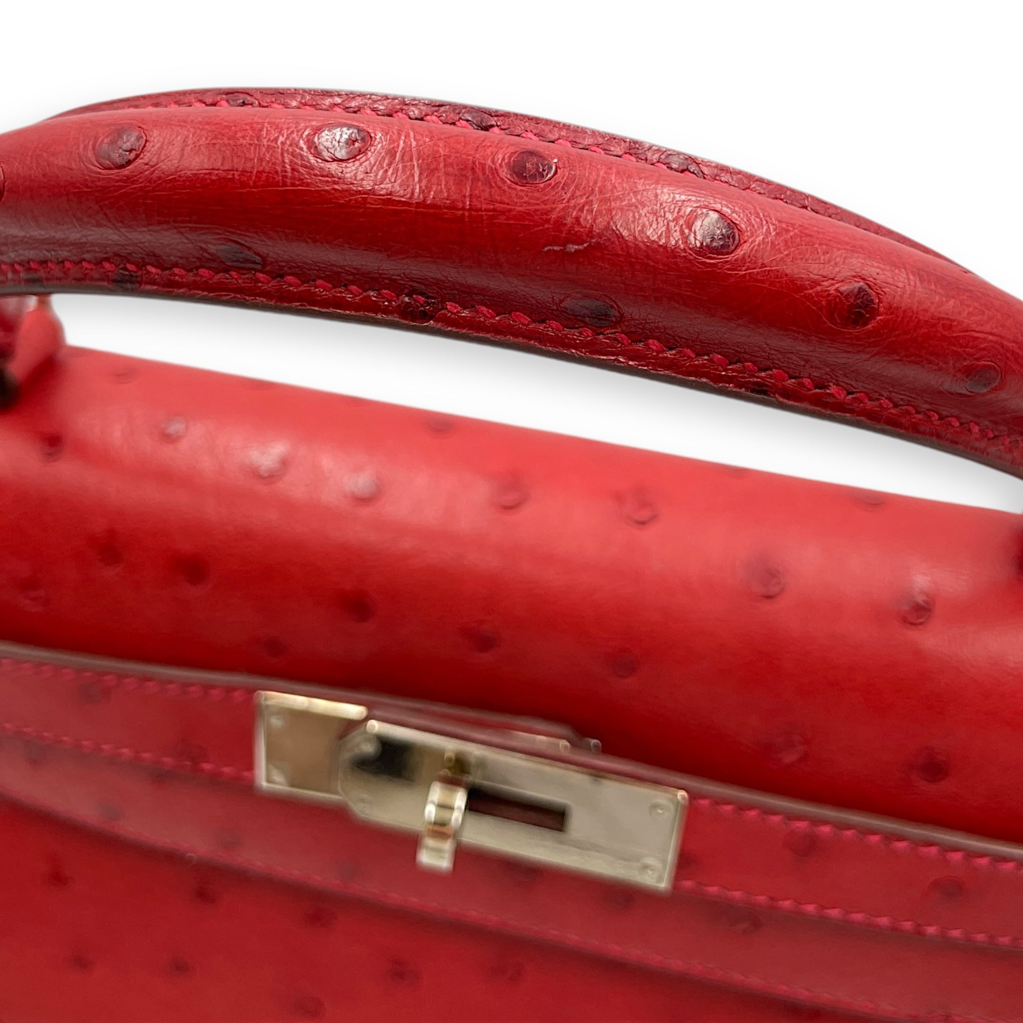 Hermès Sellier Kelly 28 Rouge Vif in Ostrich, Palladium hardware Bags Shoulder Bag Rouge Vif Red Very Good Condition