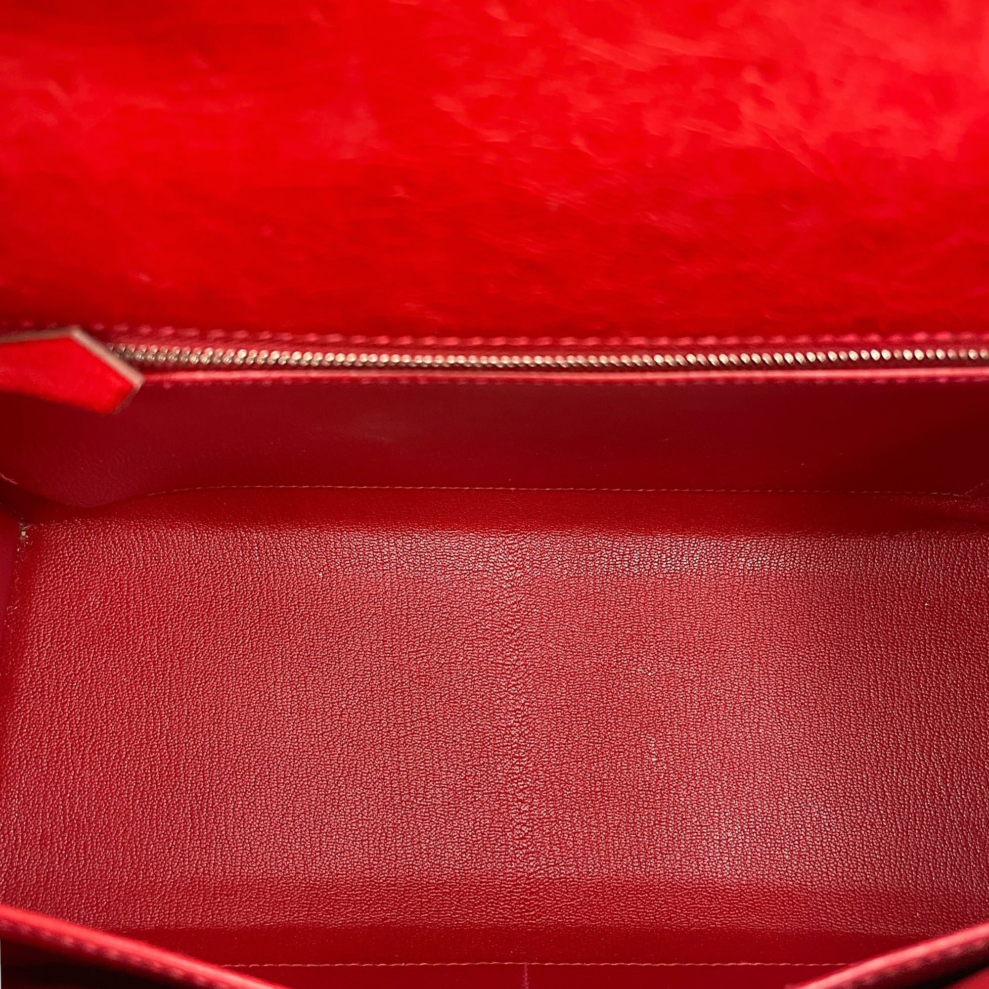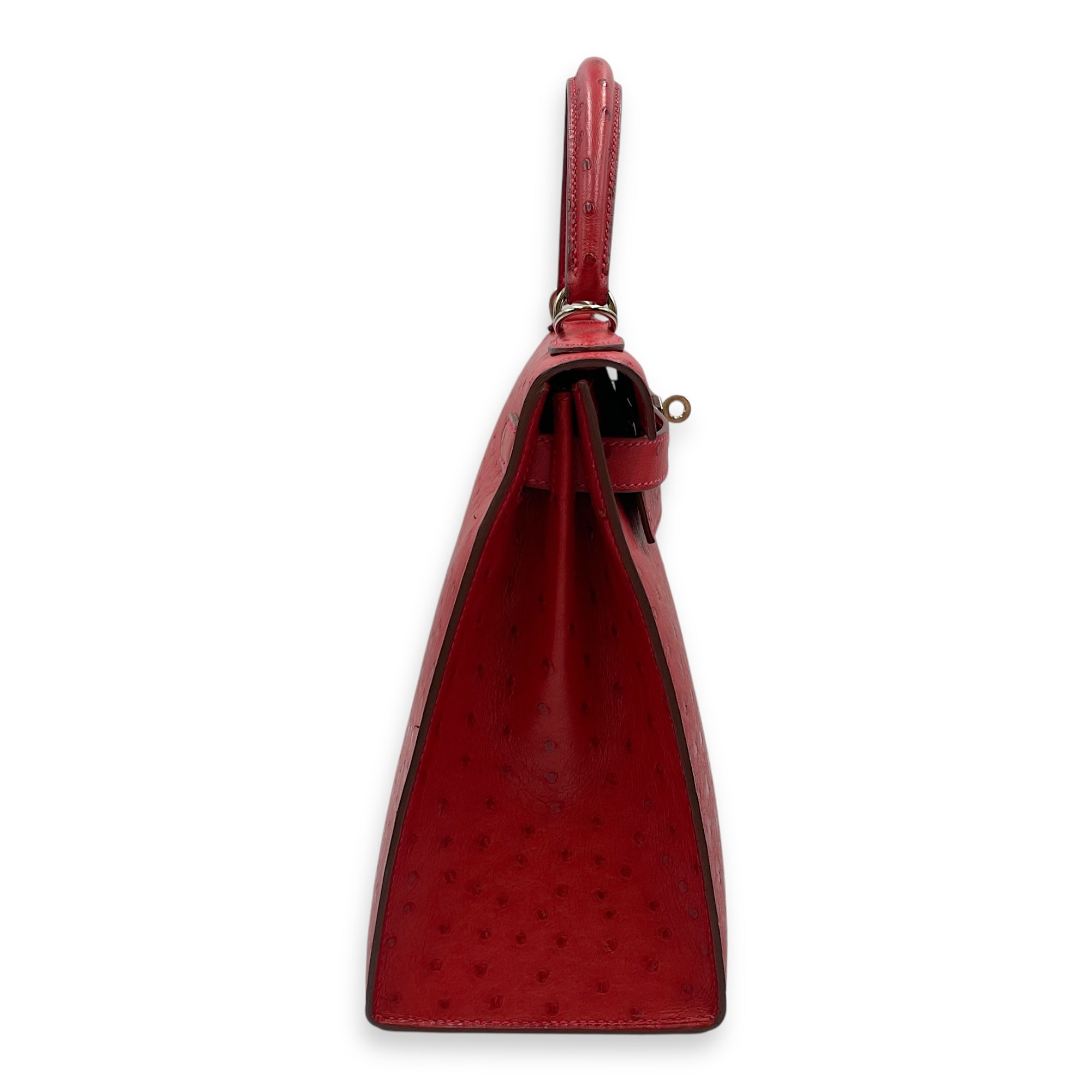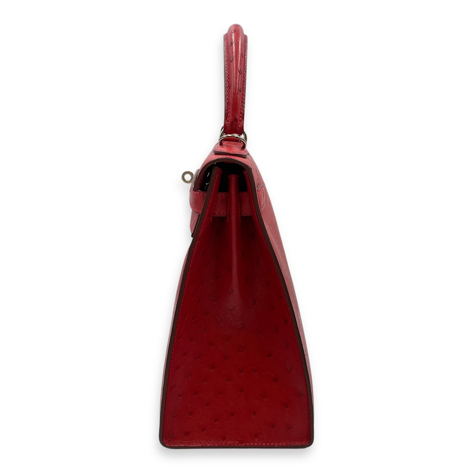 Hermès Sellier Kelly 28 Rouge Vif in Ostrich, Palladium hardware Bags Shoulder Bag Rouge Vif Red Very Good Condition