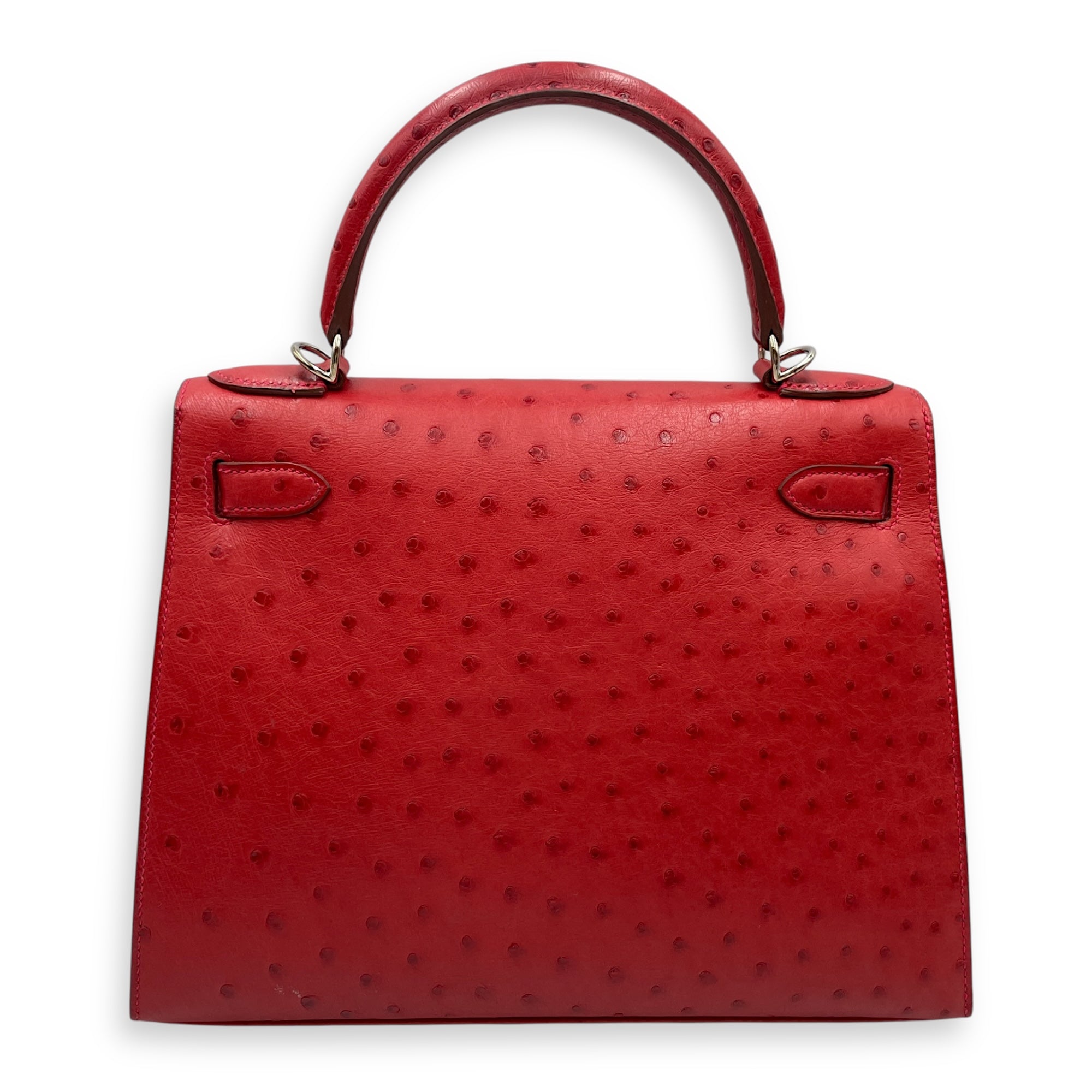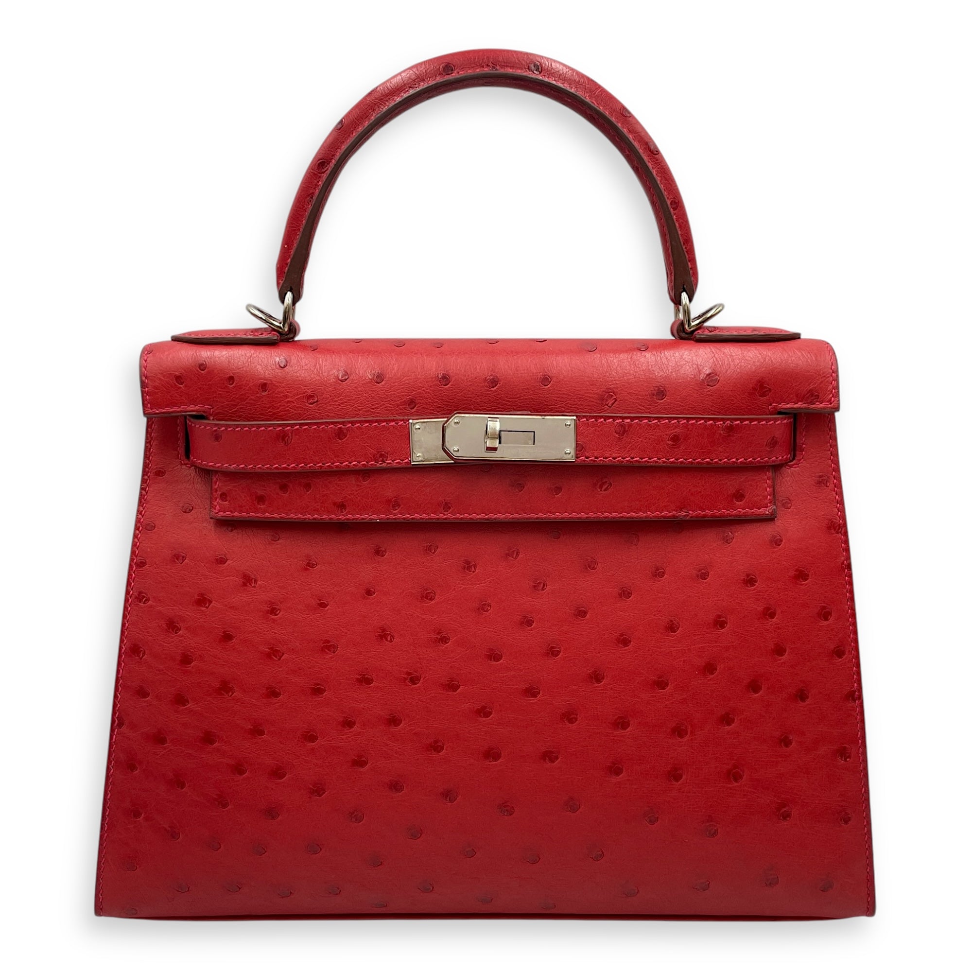 (Purely handmade customization, 10-15 days construction period)Hermès Kelly 28 Rouge Vif in Ostrich, Palladium hardware