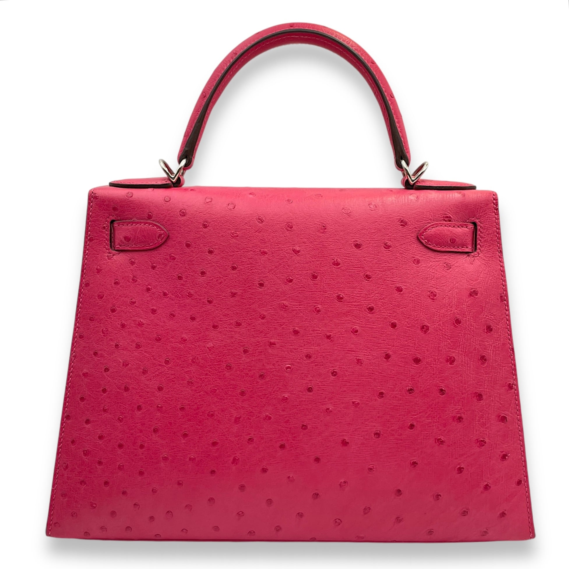 (Purely handmade customization, 10-15 days construction period)Hermès Kelly 28 Rose Tyrien in Ostrich, Palladium hardware
