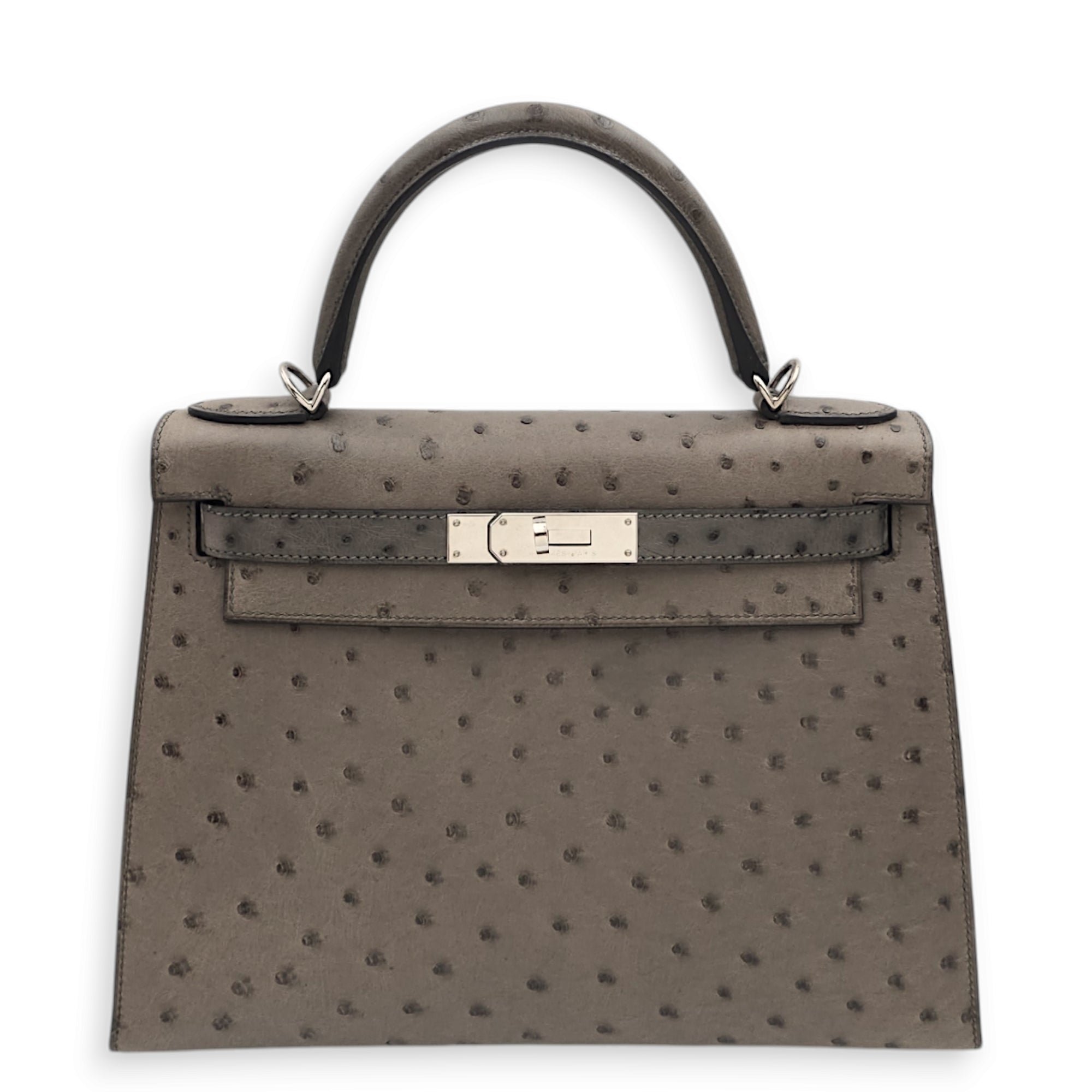 (Purely handmade customization, 10-15 days construction period)Hermès Kelly 28 Graphite in Ostrich, Palladium hardware