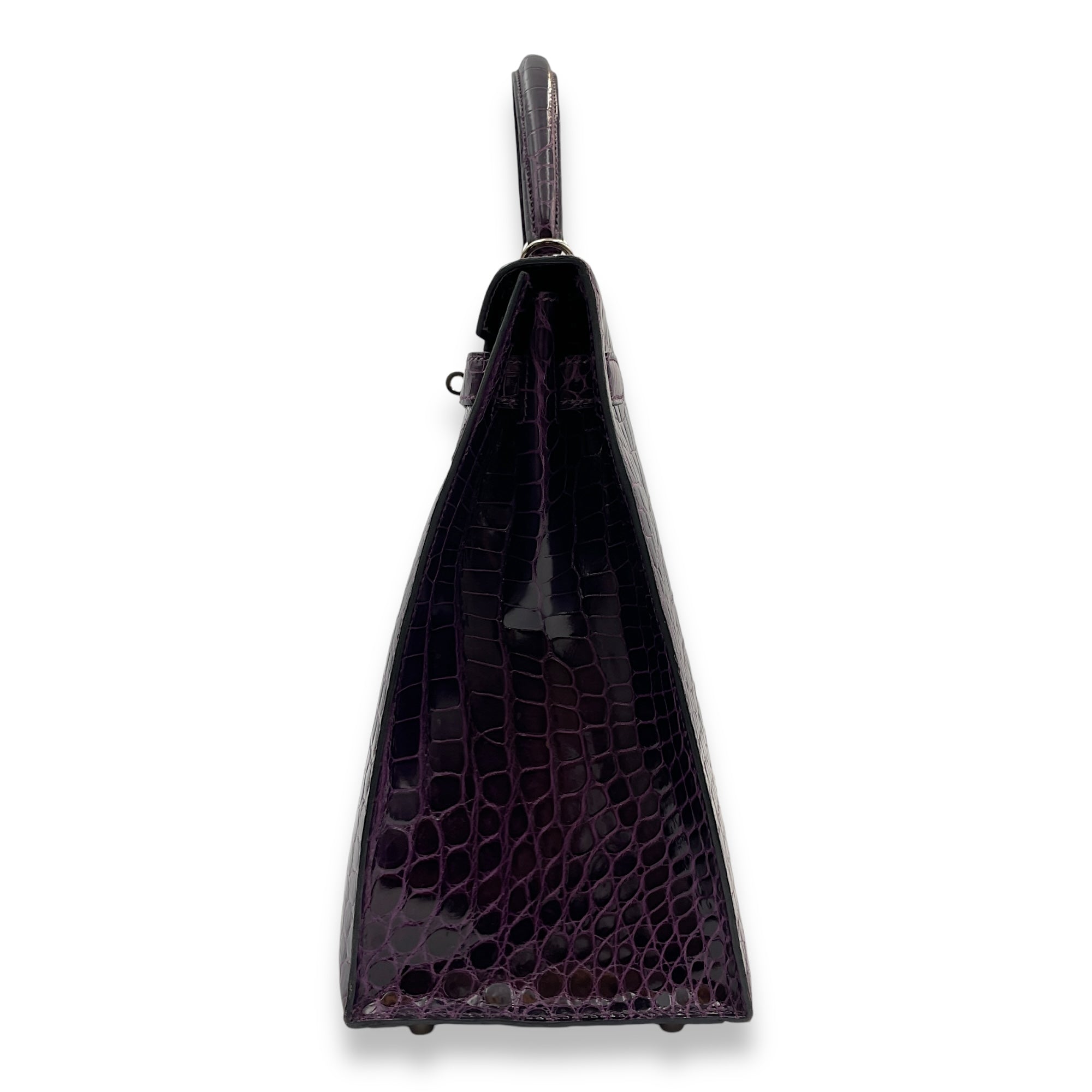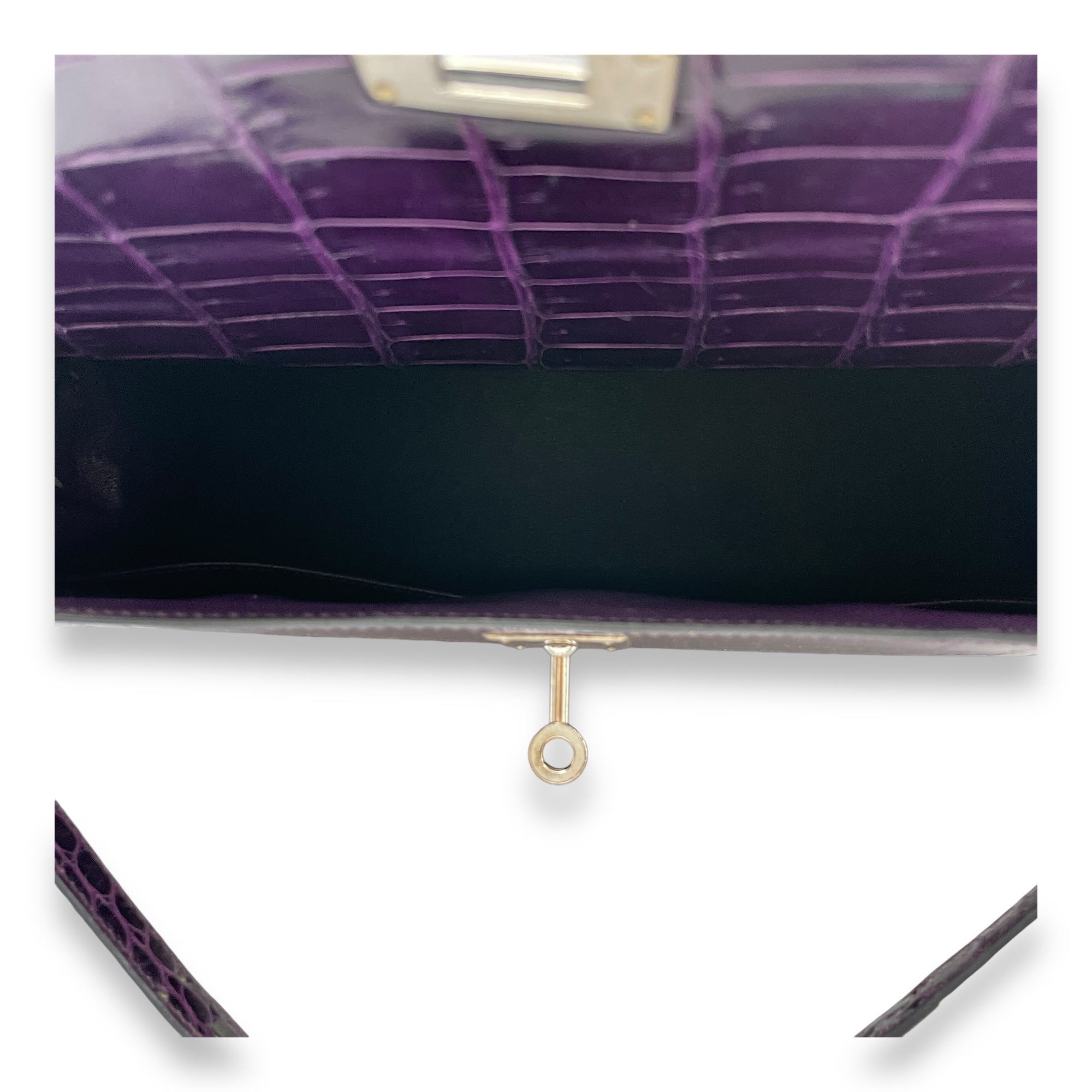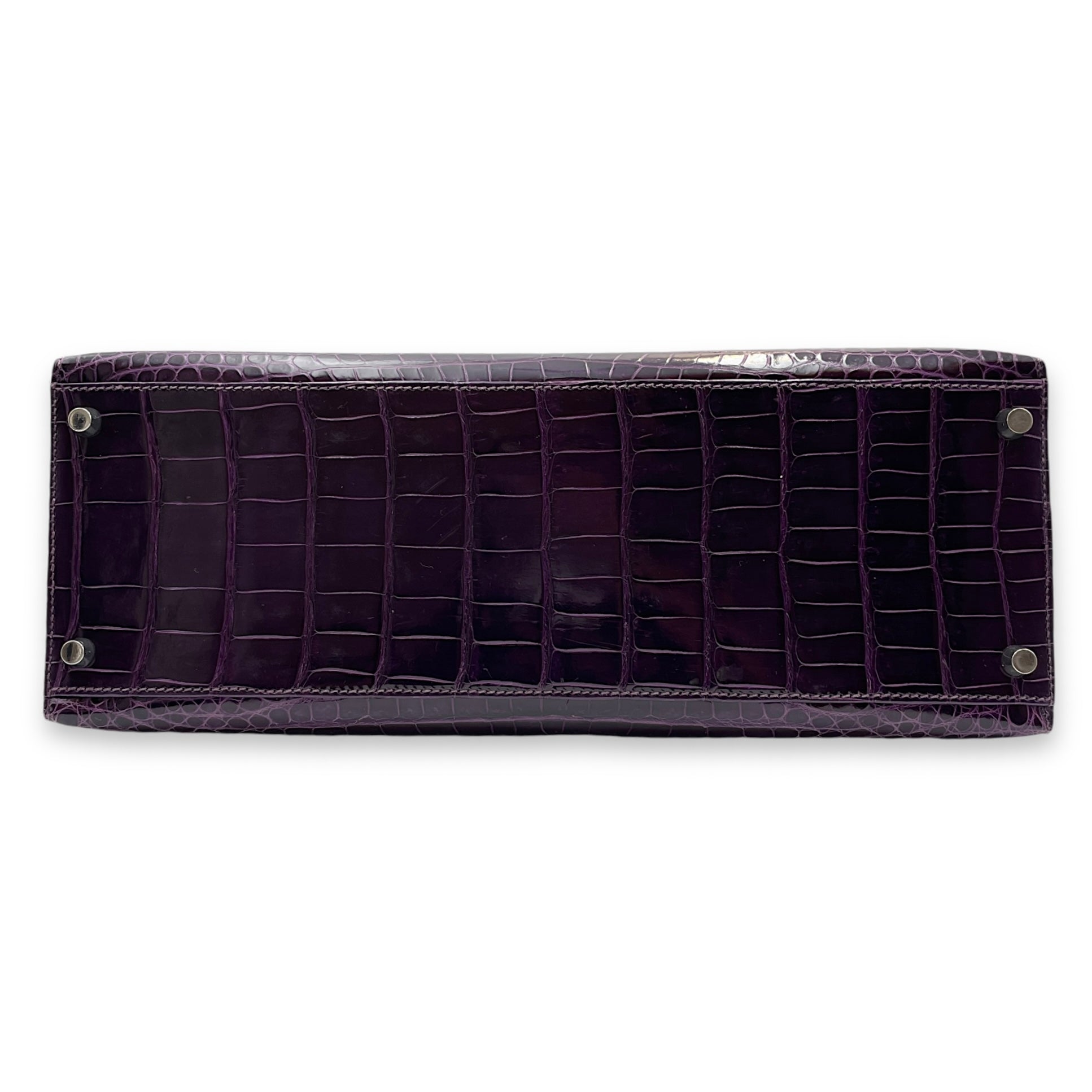Hermès Sellier Kelly 35 Amethyst in Shiny Porosus, Palladium hardware Bags Top Handle Bag Amethyst Purple Good Condition