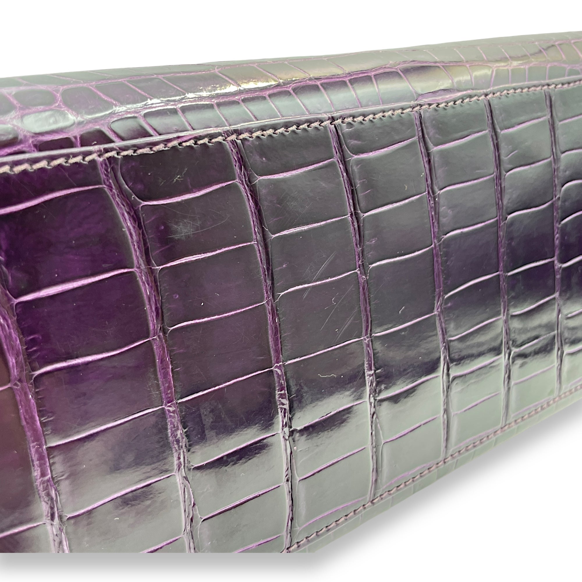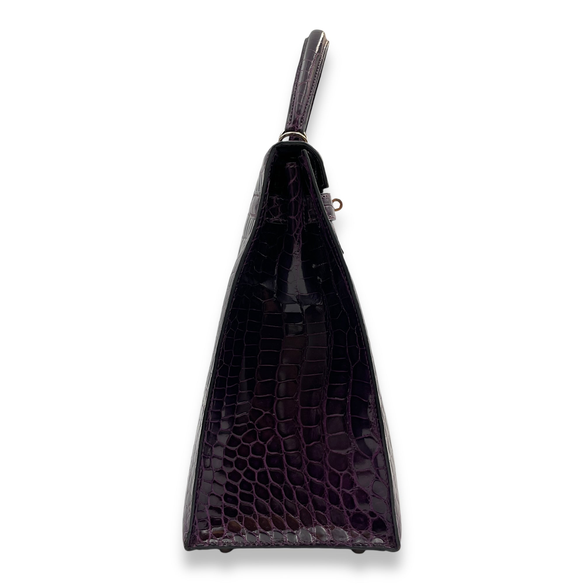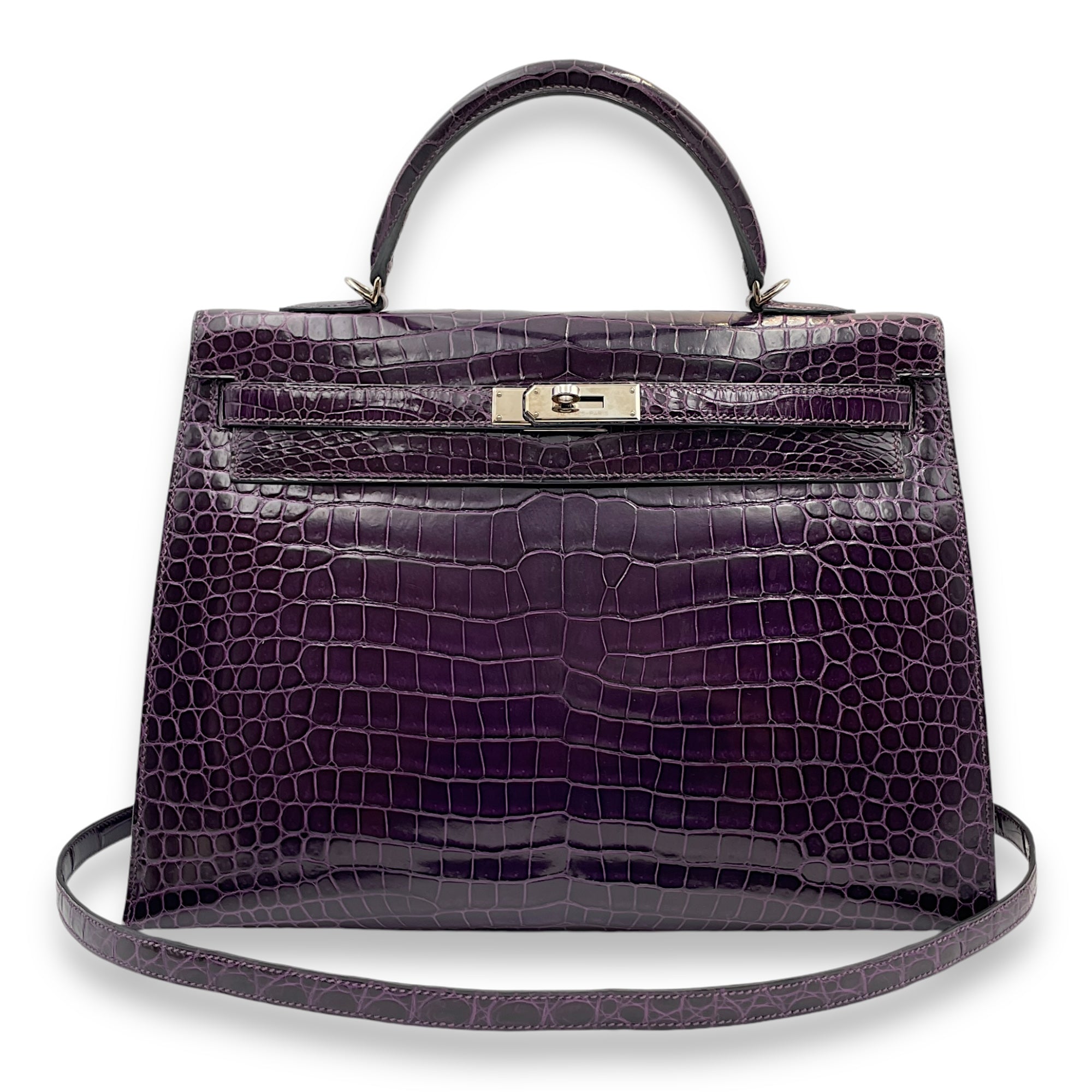 Hermès Sellier Kelly 35 Amethyst in Shiny Porosus, Palladium hardware Bags Top Handle Bag Amethyst Purple Good Condition
